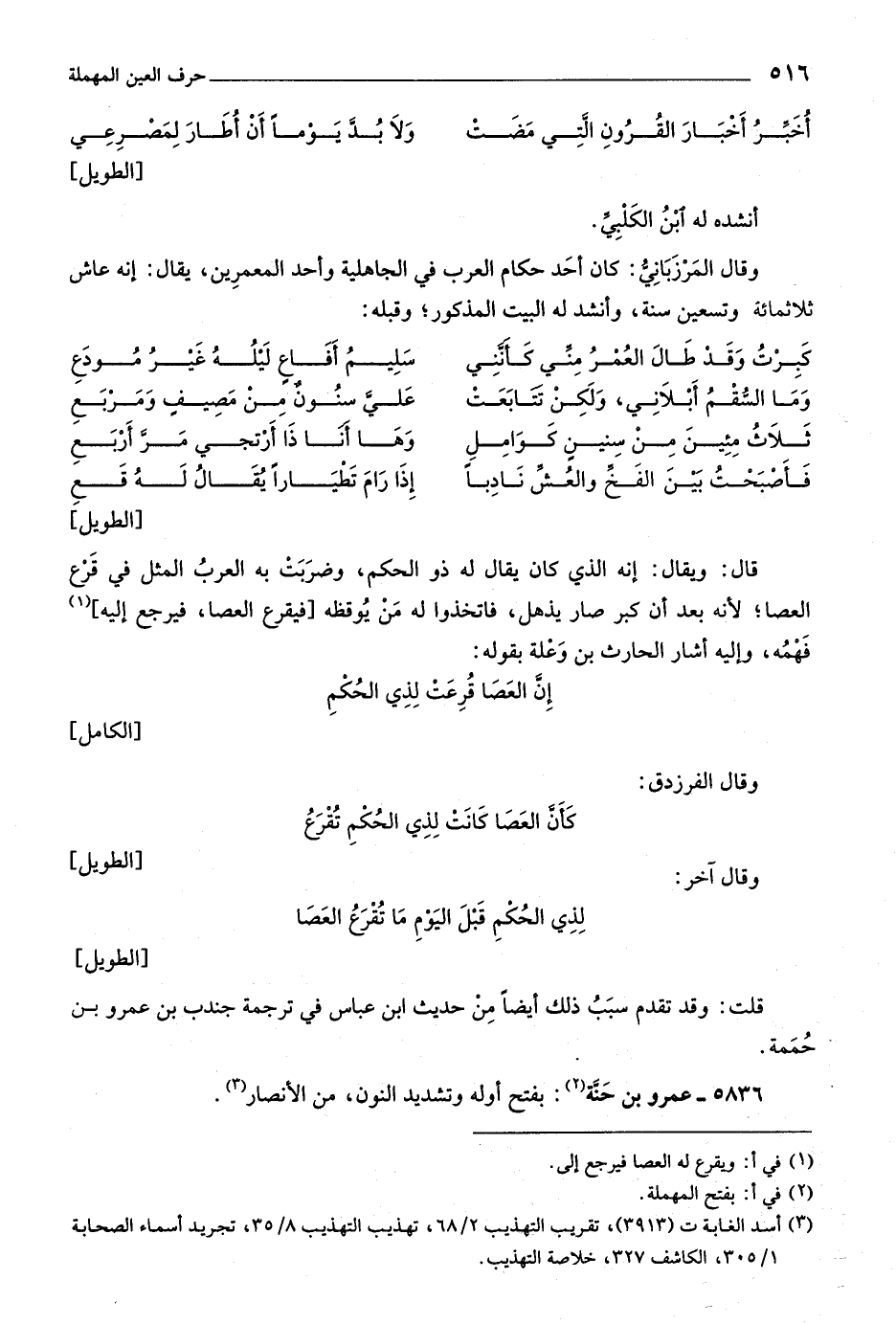 [الطويل] قال: ويقال: إنه الّذي كان يقال له ذو الحكم، وضربت به العرب المثل في قرع العصا، لأنه بعد أن كبر صار يذهل، فاتخذوا له من يوقظه [فيقرع العصا، فيرجع إليه] «١» فهمه، وإليه أشار الحارث بن وعلة بقوله: