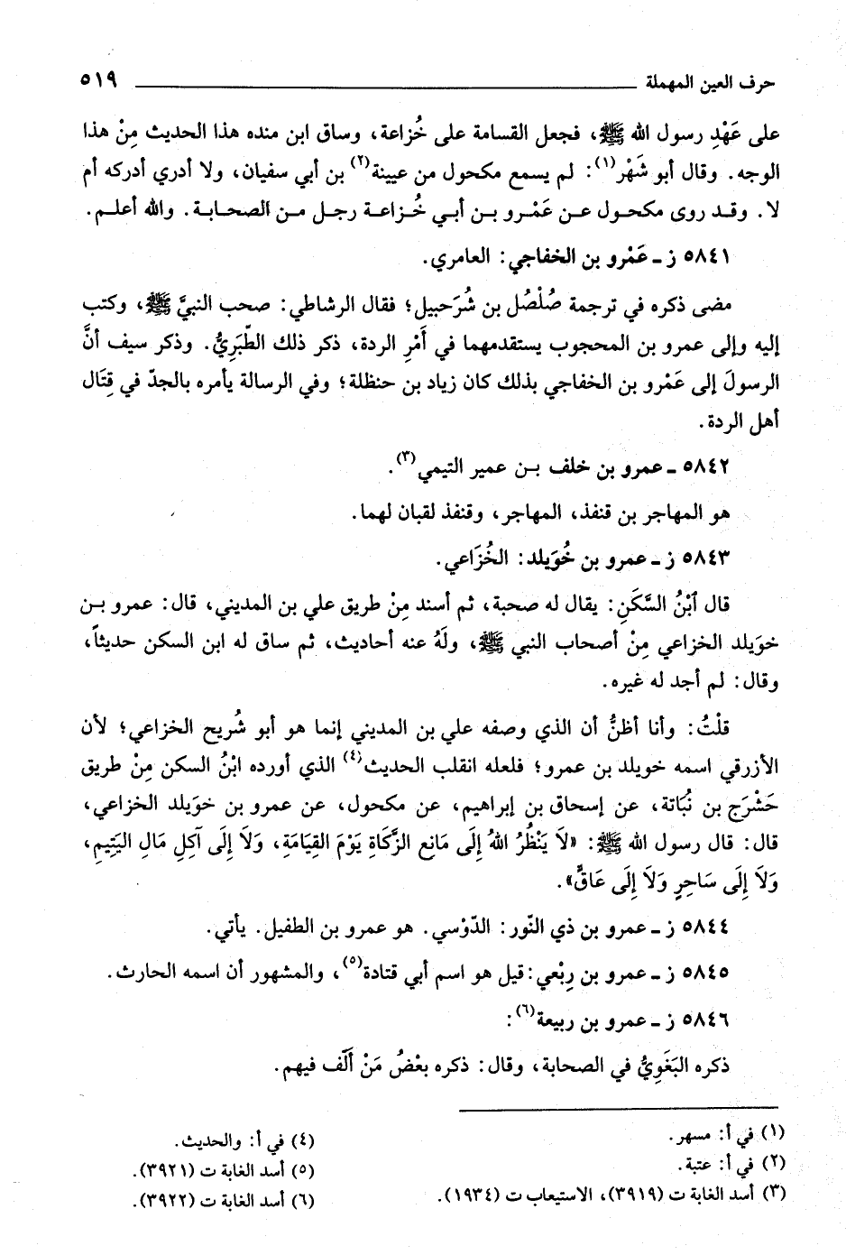 (٦) أسد الغابة ت (٣٩٢٢) .