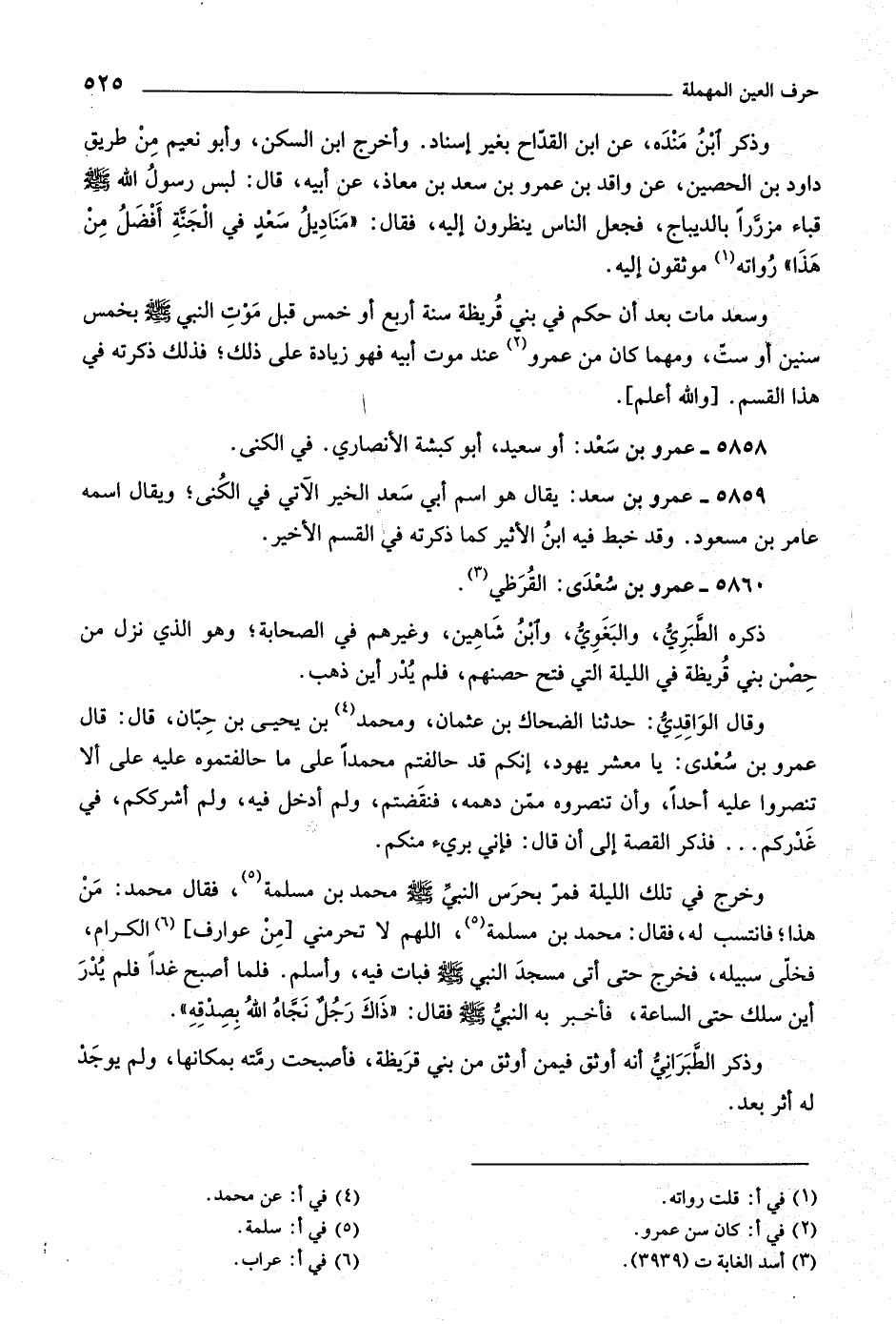 وسعد مات بعد أن حكم في بني قريظة سنة أربع أو خمس قبل موت النبيّ صلى اللَّه عليه وسلّم بخمس سنين أو ستّ، ومهما كان من عمرو «٢» عند موت أبيه فهو زيادة على ذلك، فذلك ذكرته في هذا القسم. [واللَّه أعلم] .