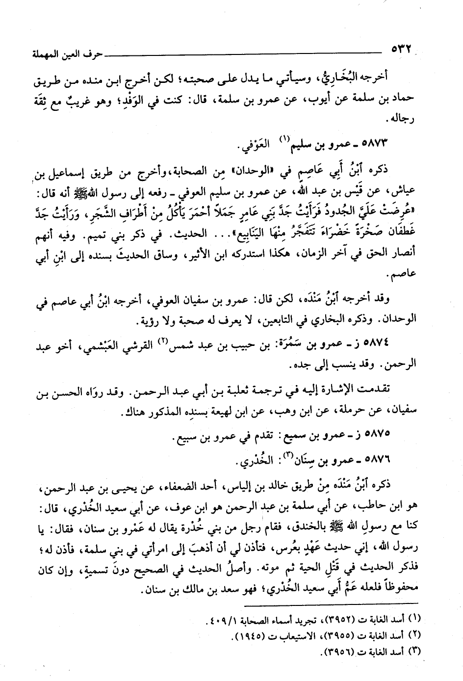 وقد أخرجه ابن مندة، لكن قال: عمرو بن سفيان العوفيّ، أخرجه ابن أبي عاصم في الوحدان. وذكره البخاري في التابعين، لا يعرف له صحبة ولا رؤية.