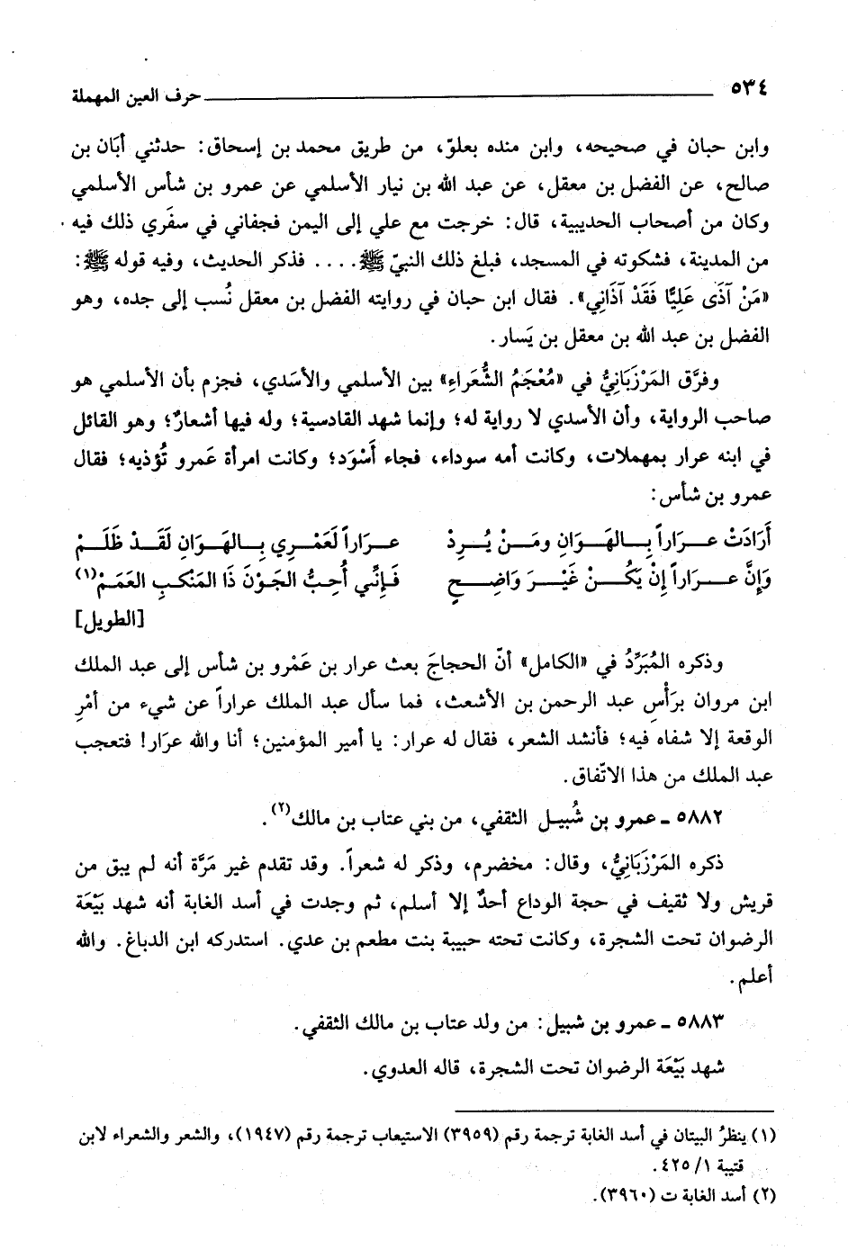 ٥٨٨٢- عمرو بن شبيل الثقفي،