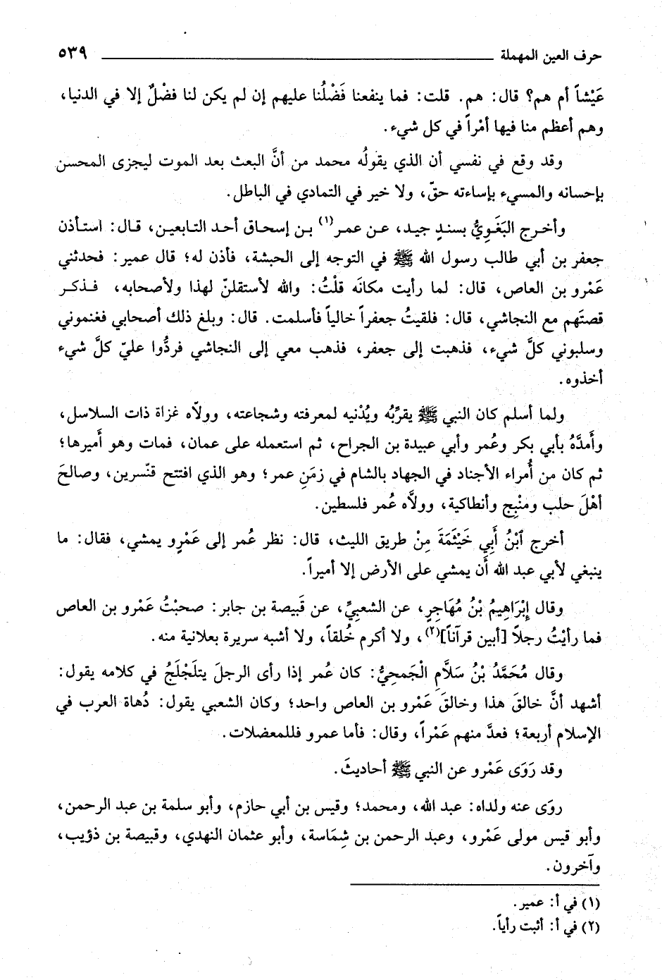 وأخرج البغويّ بسند جيد، عن عمر «١» بن إسحاق أحد التابعين، قال: استأذن جعفر بن أبي طالب رسول اللَّه صلى اللَّه عليه وسلّم في التوجه إلى الحبشة، فأذن له، قال عمير: فحدثني عمرو بن العاص، قال: لما رأيت مكانه قلت: واللَّه لأستقلنّ لهذا ولأصحابه، فذكر قصتهم مع النجاشي، قال: فلقيت جعفرا خاليا فأسلمت. قال: وبلغ ذلك أصحابي فغنموني وسلبوني كلّ شيء، فذهبت إلى جعفر، فذهب معي إلى النجاشي فردّوا عليّ كلّ شيء أخذوه.
