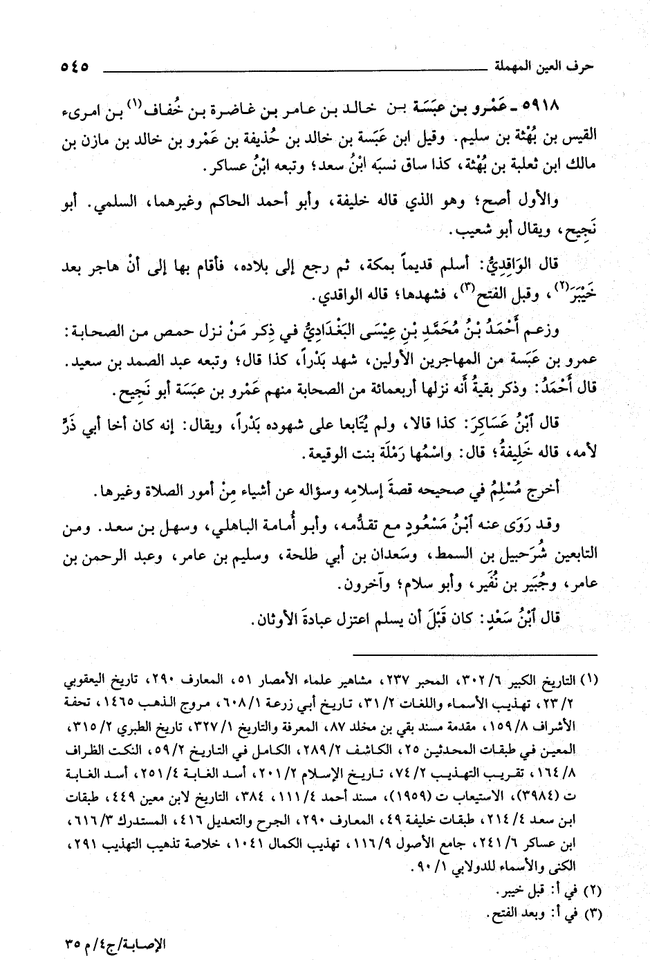 عمرو بن عبسة من المهاجرين الأولين، شهد بدرا، كذا قال، وتبعه عبد الصمد بن سعيد.
