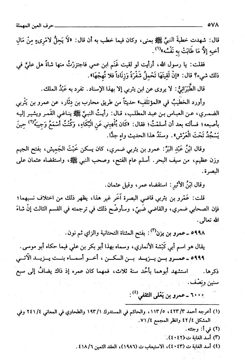 (٤) أسد الغابة ت (٤٠٤٣) ، الاستيعاب ت (١٩٨٦) ، العقد الثمين ٦/ ٤١٨.