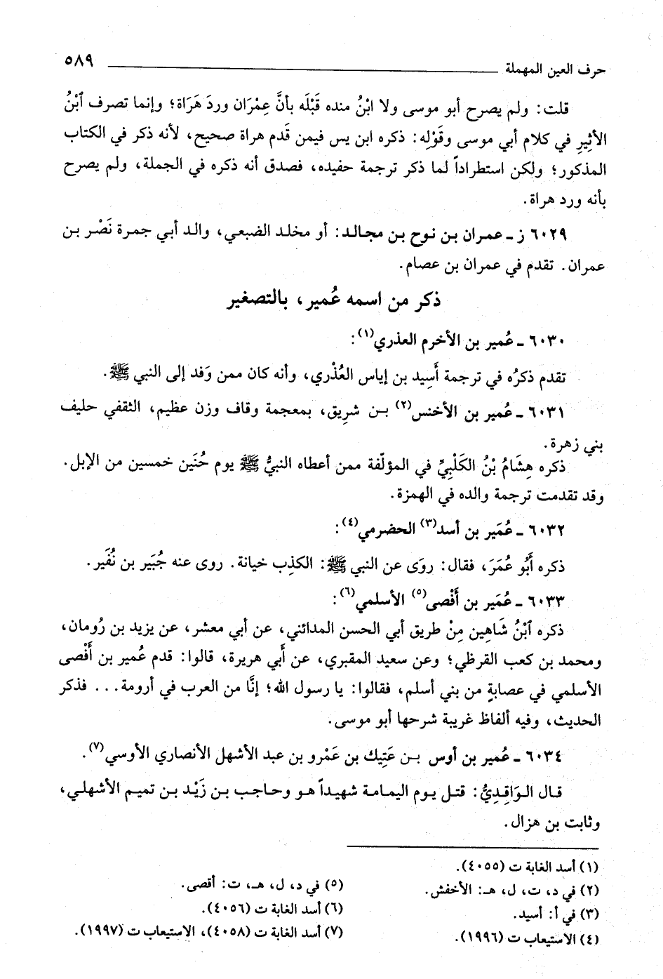 قلت: ولم يصرح أبو موسى ولا ابن مندة قبله بأنّ عمران ورد هراة، وإنما تصرف ابن الأثير في كلام أبي موسى وقوله: ذكره ابن يس فيمن قدم هراة صحيح، لأنه ذكر في الكتاب المذكور، ولكن استطرادا لما ذكر ترجمة حفيده، فصدق أنه ذكره في الجملة، ولم يصرح بأنه ورد هراة.