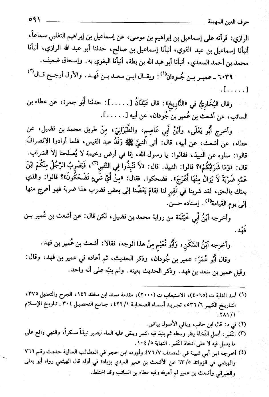 وقال البخاريّ في «التّاريخ» : قال عبدان [.....] : حدثنا أبو جمرة، عن عطاء بن السائب، عن أشعث بن عمير بن جودان، عن أبيه [.....] .
