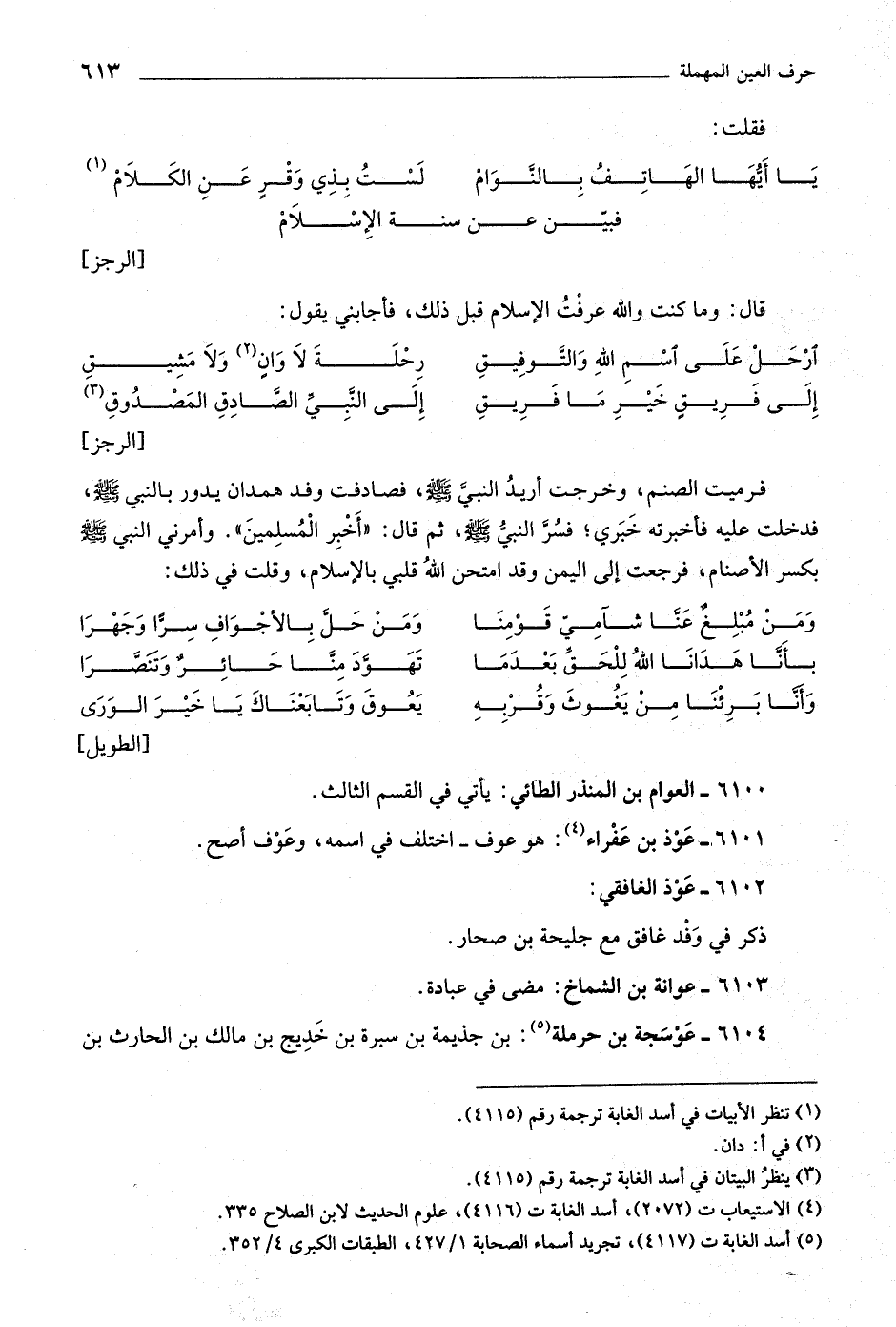فبيّن عن سنة الإسلام [الرجز] قال: وما كنت واللَّه عرفت الإسلام قبل ذلك، فأجابني يقول: