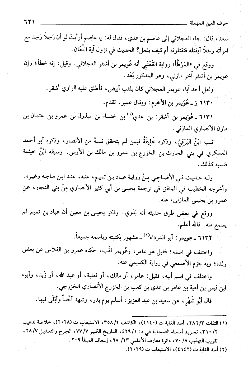ووقع في «الموطّأ» رواية القعنبي أنه عويمر بن أشقر العجلاني. وقيل: إنه خطأ، وإن عويمر بن أشقر آخر مازني، وهو المذكور بعد.