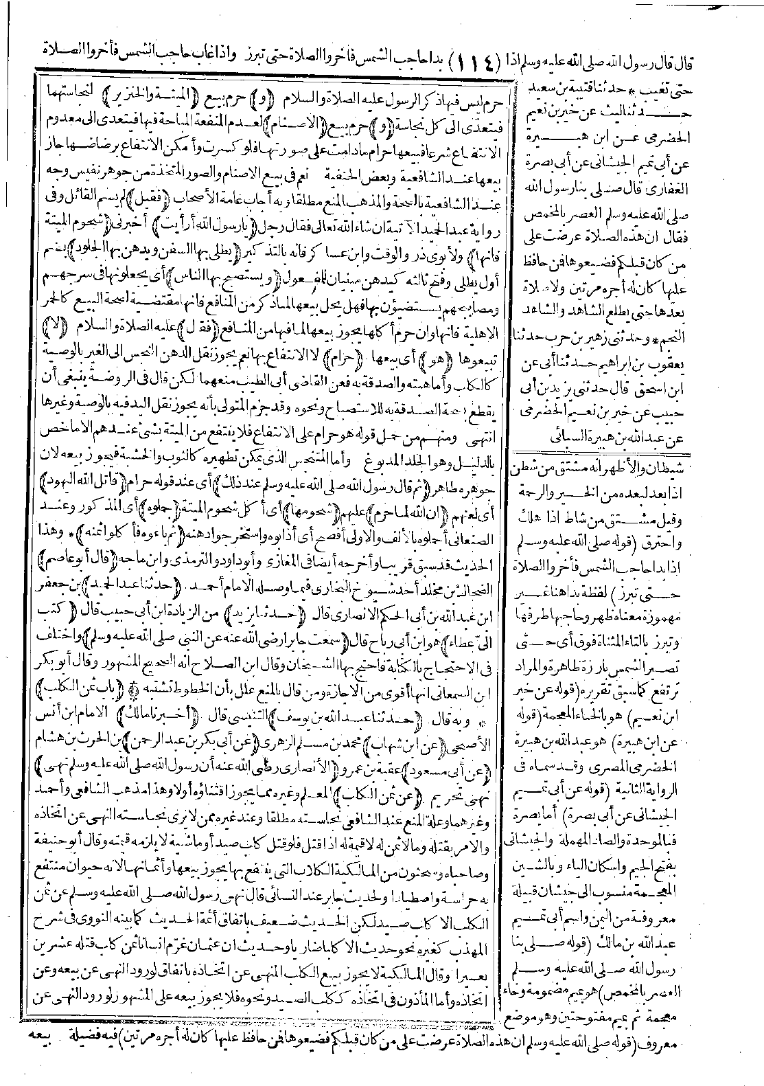 حرّم ليس فيها ذكر الرسول عليه الصلاة والسلام (و) حرم بيع (الميتة والخنزير) لنجاستهما فيتعدى إلى كل نجاسة (و) حرم بيع (الأصنام) لعدم المنفعة المباحة فيها فيتعدى إلى معدوم الانتفاع شرعًا فبيعها حرام ما دامت على صورتها فلو كسرت وأمكن الانتفاع برضاضها جاز بيعها عند الشافعية وبعض الحنفية. نعم في بيع الأصنام والصور المتخذة من جوهر نفيس وجه عند الشافعية بالصحة والمذهب المنع مطلقًا وبه أجاب عامة الأصحاب (فقيل) لم يسمّ القائل وفي رواية عبد الحميد الآتية إن شاء الله تعالى فقال رجل: (يا رسول الله أرأيت) أخبرني (شحوم الميتة فإنها) ولأبوي ذر والوقت وابن عساكر: فإنه بالتذكير (يطلى بها السفن ويدهن بها الجلود) بضم أول يطلى وفتح ثالثه كيدهن مبنيان للمفعول (ويستصبح بها الناس) أي يجعلونها في سرجهم ومصابيحهم يستضيئون بها فهل يحل بيعها لما ذكر من المنافع فإنها مقتضية لصحة البيع كالحمر الأهلية فإنها وإن حرم أكلها يجوز بيعها لما فيها من المنافع، (فقال) عليه الصلاة والسلام: (لا) تبيعوها (هو) أي بيعها (حرام) لا الانتفاع بها. نعم يجوز نقل الدهن النجس إلى الغير بالوصية كالكلب وأما هبته والصدقة به فعن القاضي أبي الطيب منعهما، لكن قال في الروضة: ينبغي أن يقطع بصحة الصدقة به للاستصباح ونحوه، وقد جزم المتولي بأنه يجوز نقل اليد فيه بالوصية وغيرها انتهى.