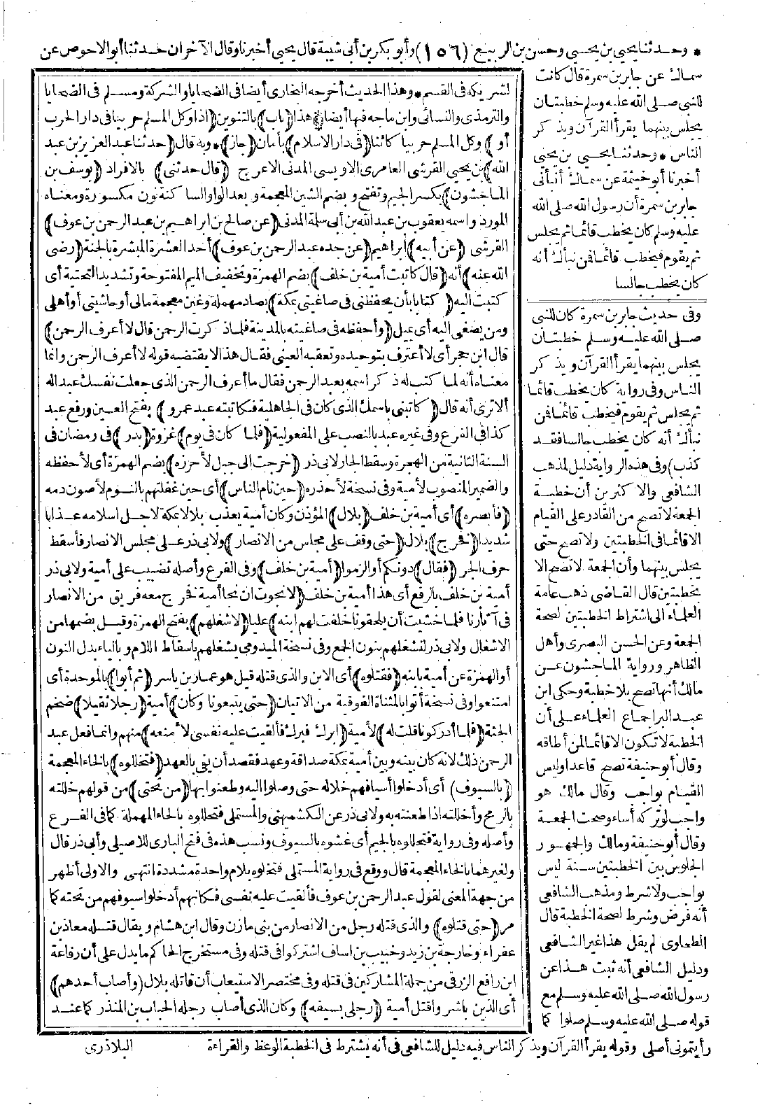2301 - حَدَّثَنَا عَبْدُ الْعَزِيزِ بْنُ عَبْدِ اللَّهِ قَالَ: حَدَّثَنِي يُوسُفُ بْنُ الْمَاجِشُونِ عَنْ صَالِحِ بْنِ إِبْرَاهِيمَ بْنِ عَبْدِ الرَّحْمَنِ بْنِ عَوْفٍ عَنْ أَبِيهِ عَنْ جَدِّهِ عَبْدِ الرَّحْمَنِ بْنِ عَوْفٍ -رضي الله عنه- قَالَ: "كَاتَبْتُ أُمَيَّةَ بْنَ خَلَفٍ كِتَابًا بِأَنْ يَحْفَظَنِي فِي صَاغِيَتِي بِمَكَّةَ وَأَحْفَظَهُ فِي صَاغِيَتِهِ بِالْمَدِينَةِ، فَلَمَّا ذَكَرْتُ "الرَّحْمَنَ" قَالَ: لاَ أَعْرِفُ الرَّحْمَنَ، كَاتِبْنِي بِاسْمِكَ الَّذِي كَانَ فِي الْجَاهِلِيَّةِ، فَكَاتَبْتُهُ "عَبْدُ عَمْرٍو". فَلَمَّا كَانَ فِي يَوْمِ بَدْرٍ خَرَجْتُ إِلَى جَبَلٍ لأُحْرِزَهُ حِينَ نَامَ النَّاسُ، فَأَبْصَرَهُ بِلاَلٌ، فَخَرَجَ حَتَّى وَقَفَ عَلَى مَجْلِسٍ مِنَ الأَنْصَارِ فَقَالَ: أُمَيَّةُ بْنُ خَلَفٍ، لاَ نَجَوْتُ إِنْ نَجَا أُمَيَّةُ. فَخَرَجَ مَعَهُ فَرِيقٌ مِنَ الأَنْصَارِ فِي آثَارِنَا، فَلَمَّا خَشِيتُ أَنْ يَلْحَقُونَا خَلَّفْتُ لَهُمُ ابْنَهُ لأَشْغَلَهُمْ فَقَتَلُوهُ، ثُمَّ أَبَوْا حَتَّى يَتْبَعُونَا -وَكَانَ رَجُلاً ثَقِيلاً- فَلَمَّا أَدْرَكُونَا قُلْتُ لَهُ: ابْرُكْ، فَبَرَكَ، فَأَلْقَيْتُ عَلَيْهِ نَفْسِي لأَمْنَعَهُ، فَتَخَلَّلُوهُ بِالسُّيُوفِ مِنْ تَحْتِي حَتَّى قَتَلُوهُ، وَأَصَابَ أَحَدُهُمْ رِجْلِي بِسَيْفِهِ. وَكَانَ عَبْدُ الرَّحْمَنِ بْنُ عَوْفٍ يُرِينَا ذَلِكَ الأَثَرَ فِي ظَهْرِ قَدَمِهِ قال أبو عبد الله: سمع يوسف صالحًا وسمع إبراهيم أباه. [الحديث 2301 - طرفه في: 3971].