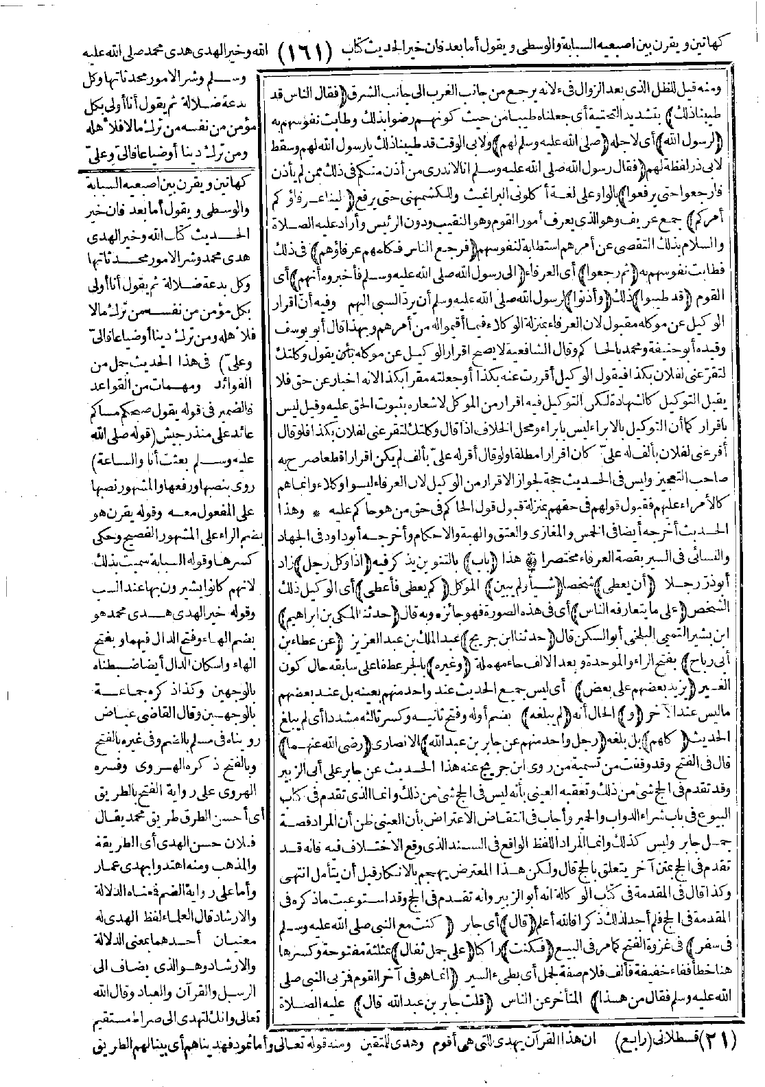 الصلاة والسلام بذلك التقصي عن أمرهم استطابة لنفوسهم (فرجع الناس فكلمهم عرفاؤهم) في ذلك فطابت نفوسهم به (ثم رجعوا) أي العرفاء (إلى رسول الله -صَلَّى اللَّهُ عَلَيْهِ وَسَلَّمَ- فأخبروه أنهم) أي القوم (قد طيبوا) ذلك (وأذنوا) لرسول الله -صَلَّى اللَّهُ عَلَيْهِ وَسَلَّمَ- أن يردّ السبي إليهم، وفيه أنّ إقرار الوكيل عن موكله مقبول لأن العرفاء بمنزلة الوكلاء فيما أقيموا له من أمرهم، وبهذا قال أبو يوسف وقيده أبو حنيفة ومحمد بالحاكم، وقال الشافعية: لا يصح إقرار الوكيل عن موكله بأن يقول: وكّلتك لتقرّ عني لفلان بكذا فيقول الوكيل أقررت عنه بكذا أو جعلته مقرًّا بكذا لأنه إخبار عن حق فلا يقبل التوكيل كالشهادة لكن التوكيل فيه إقرار من الموكل لإشعاره بثبوت الحق عليه، وقيل ليس بإقرار كما أن التوكيل بالإبراء ليس بإبراء ومحل الخلاف إذا قال وكّلتك لتقرّ عني لفلان بكذا، فلو قال أقرّ عني لفلان بألف له علي كان إقرارًا مطلقًا، ولو قال أقرّ له عليّ بألف لم يكن إقرارًا قطعًا صرّح به صاحب التعجيز، وليس في الحديث حجة لجواز الإقرار في الوكيل لأن العرفاء ليسوا وكلاء، وإنما هم كالأمراء عليهم فقبول قولهم في حقهم بمنزلة قبول قول الحاكم في حق من هو حاكم عليه.