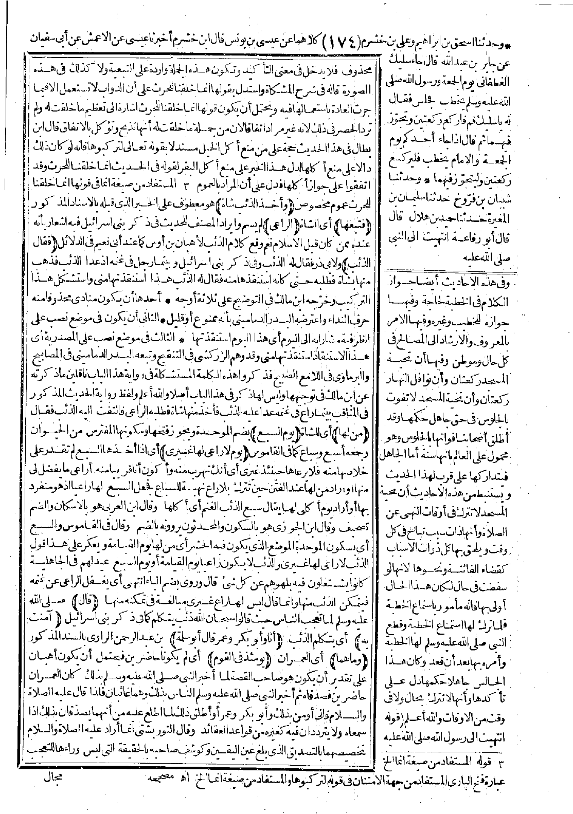 وقال ابن العربي: هو بالإسكان والضم تصحيف، وقال ابن الجوزي: هو بالسكون والمحدثون يروونه بالضم، وقال في القاموس: والسبع أي بسكون الموحدة الموضع الذي يكون فيه الحشر أي من لها يوم القيامة، ويعكر على هذا قول الذئب لا راعي لها غيري والذئب لا يكون راعيًا يوم القيامة أو يوم السبع عيد لهم في الجاهلية كانوا يشتغلون فيه يلهوهم عن كل شيء قال: وروي بضم الباء انتهى.