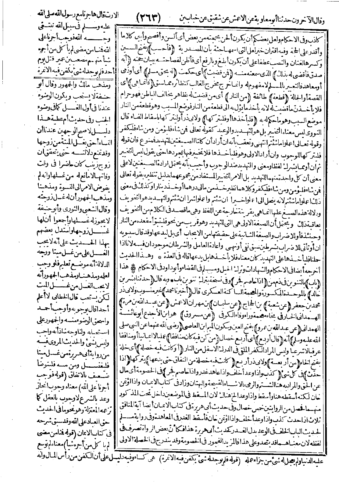 وبه قال: (حدّثنا بشر بن خالد) بالموحدة المكسورة والمعجمة الساكنة العسكري قال: (أخبرنا محمد) غير منسوب ولأبي ذر محمد بن جعفر (عن شعبة) بن الحجاج (عن سليمان) بن مهران الأعمش (عن عبد الله بن مرة) الهمداني الخارفي بخاء معجمة وراء وفاء الكوفي (عن مسروق) هو ابن الأجدع أبو عائشة الهمداني (عن عبد الله بن عمرو) بفتح العين وسكون الميم ابن العاصي (-رضي الله عنهما- عن النبي -صَلَّى اللَّهُ عَلَيْهِ وَسَلَّمَ-) أنه (قال):