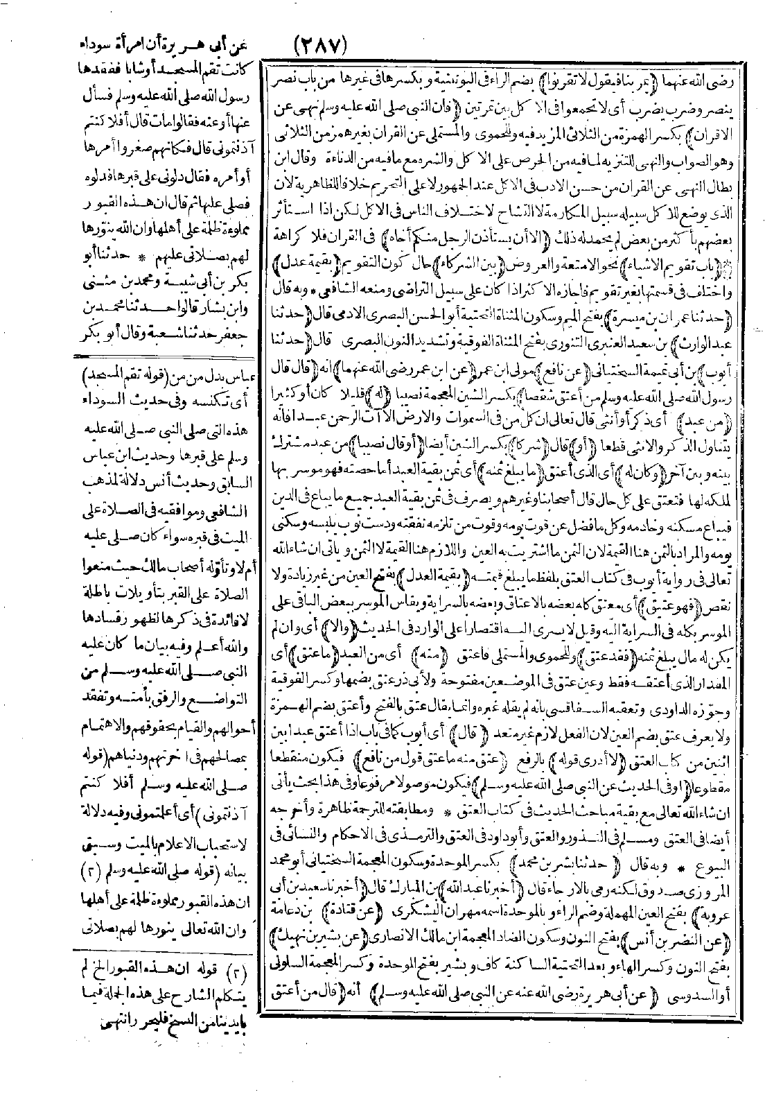 2491 - حَدَّثَنَا عِمْرَانُ بْنُ مَيْسَرَةَ حَدَّثَنَا عَبْدُ الْوَارِثِ حَدَّثَنَا أَيُّوبُ عَنْ نَافِعٍ عَنِ ابْنِ عُمَرَ -رضي الله عنهما- قَالَ: قَالَ رَسُولُ اللَّهِ -صَلَّى اللَّهُ عَلَيْهِ وَسَلَّمَ-: «مَنْ أَعْتَقَ شِقْصًا لَهُ مِنْ عَبْدٍ -أَوْ شِرْكًا، أَوْ قَالَ نَصِيبًا- وَكَانَ لَهُ مَا يَبْلُغُ ثَمَنَهُ بِقِيمَةِ الْعَدْلِ فَهْوَ عَتِيقٌ، وَإِلاَّ فَقَدْ عَتَقَ مِنْهُ مَا عَتَقَ».
