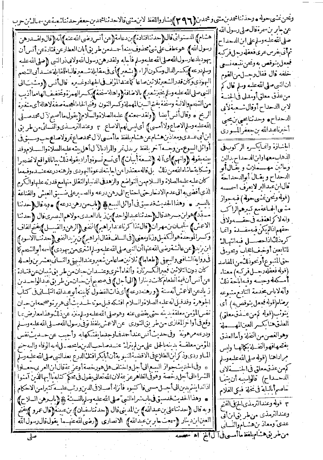 (أن النبي-صَلَّى اللَّهُ عَلَيْهِ وَسَلَّمَ-: اشترى من يهودي) اسمه أبو الشحم كما في رواية الشافعي والبيهقي (طعامًا) ثلاثين صاعًا من شعير وعند البيهقي والنسائي بعشرين ولعله كان دون الثلاثين فجبر الكسر تارة وألغاه أخرى وعند ابن حبّان من طريق شيبان عن قتادة عن أنس أن قيمة الطعام كانت دينارًا (إلى أجل) في صحيح ابن حبان من طريق عبد الواحد بن زياد عن الأعمش أنه سنة (ورهنه درعه). أي ذات الفضول كما بيّنه أبو عبد الله التلمساني في كتاب الجوهرة، وقد قيل إنه عليه الصلاة والسلام افتكّه قبل موته لحديث أبي هريرة، وصححه ابن حبان: نفس المؤمن معلقة بدينه حتى يقضى عنه وهو-صَلَّى اللَّهُ عَلَيْهِ وَسَلَّمَ- منزّه عن ذلك، وهذا معارض بما وقع في أواخر المغازي من طريق الثوري عن الأعمش بلفظ: توفي رسول الله -صَلَّى اللَّهُ عَلَيْهِ وَسَلَّمَ- ودرعه مرهونة. وفي حديث أنس عند أحمد: فما وجد ما يفتكها به.