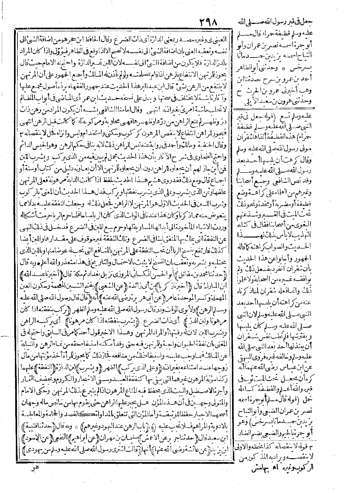 فيجوز للراهن انتفاع لا ينقص المرهون كركوب وسكنى واستخدام ولبس وإنزاء فحل لا ينقصانه وقال الحنفية ومالك وأحمد في رواية عنه: ليس للراهن ذلك لأنه ينافي حكم الرهن وهو الحبس الدائم، واحتج الطحاوي في شرح الآثار: بأن هذا الحديث مجمل لم يبين فيه من الذي يركب ويشرب اللبن فمن أين جاز لهم أن يجعلوه للراهن دون أنس يجعلوه للمرتهن إلا أن يعاونه دليل من كتاب أو سُنّة أو إجماع قال: ومع ذلك فقد روى هشيم هذا الحديث بلفظ: إذا كانت الدابة مرهونة فعلى المرتهن علفها وثمن الذي يشرب وعلى الذي يشرب نفقتها ويركب، فدلّ هذا الحديث أن المعنيّ بالركوب وشرب اللبن في الحديث الأوّل هو المرتهن لا الراهن فجعل ذلك له وجعلت النفقة عليه بدلاً مما يتعوض منه مما ذكرنا وكان هذا عندنا في الوقت الذي كان الربا مباحًا فلما حرم الربا حرمت أشكاله، وردت الأشياء المأخوذة إلى أبدالها المساوية لها وحرم بيع اللبن في الضرع فدخل في ذلك النهي عن النفقة التي يملك بها المنفق لبنًا في الضرع وتلك النفقة غير موقوف على مقدارها واللبن أيضًا كذلك فارتفع بنسخ الربا أن تجب النفقة على المرتهن بالمنافع التي تجب له عوضًا منها، وباللبن الذي يحتلبه ويشربه. وتعقب بأن النسخ لا يثبت بالاحتمال والتاريخ في هذا متعذر والله أعلم.