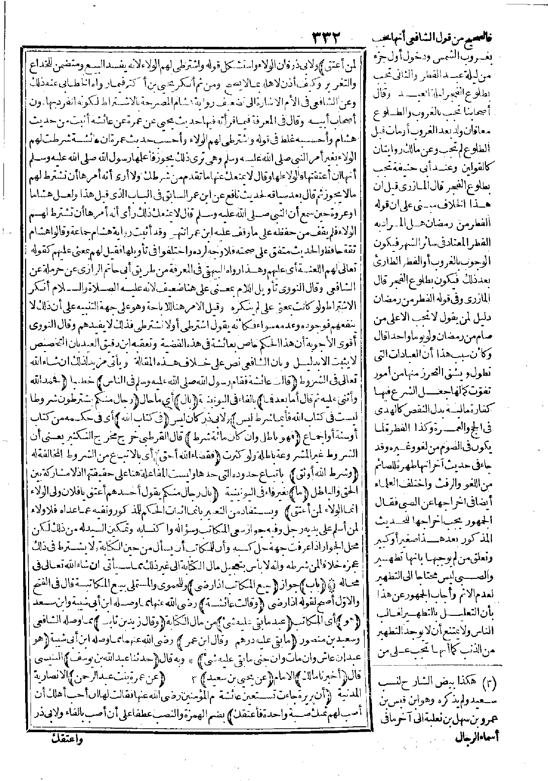 وقال في المعرفة فيما قرأته فيها حديث يحيى عن عمرة عن عائشة أثبت من حديث هشام، وأحسبه غلط في قوله واشترطي لهم الولاء، وأحسب حديث عمرة أن عائشة شرطت لهم الولاء بغير أمر النبي -صَلَّى اللَّهُ عَلَيْهِ وَسَلَّمَ- وهي ترى ذلك يجوز فأعلمها رسول الله -صَلَّى اللَّهُ عَلَيْهِ وَسَلَّمَ- أنها إن أعتقتها فالولاء لها. وقال: لا يمنعك عنها ما تقدم من شرطك ولا أرى أنه أمرها أن تشترط لهم ما لا يجوز ثم قال بعد سياقه لحديث نافع عن ابن عمر السابق في الباب الذي قبل هذا ولعل هشامًا أو عروة حين سمع أن النبي -صَلَّى اللَّهُ عَلَيْهِ وَسَلَّمَ- قال: "لا يمنعك ذلك" رأى أنه أمرها أن تشترط لهم الولاء فلم يقف من حفظه على ما وقف عليه ابن عمر انتهى.