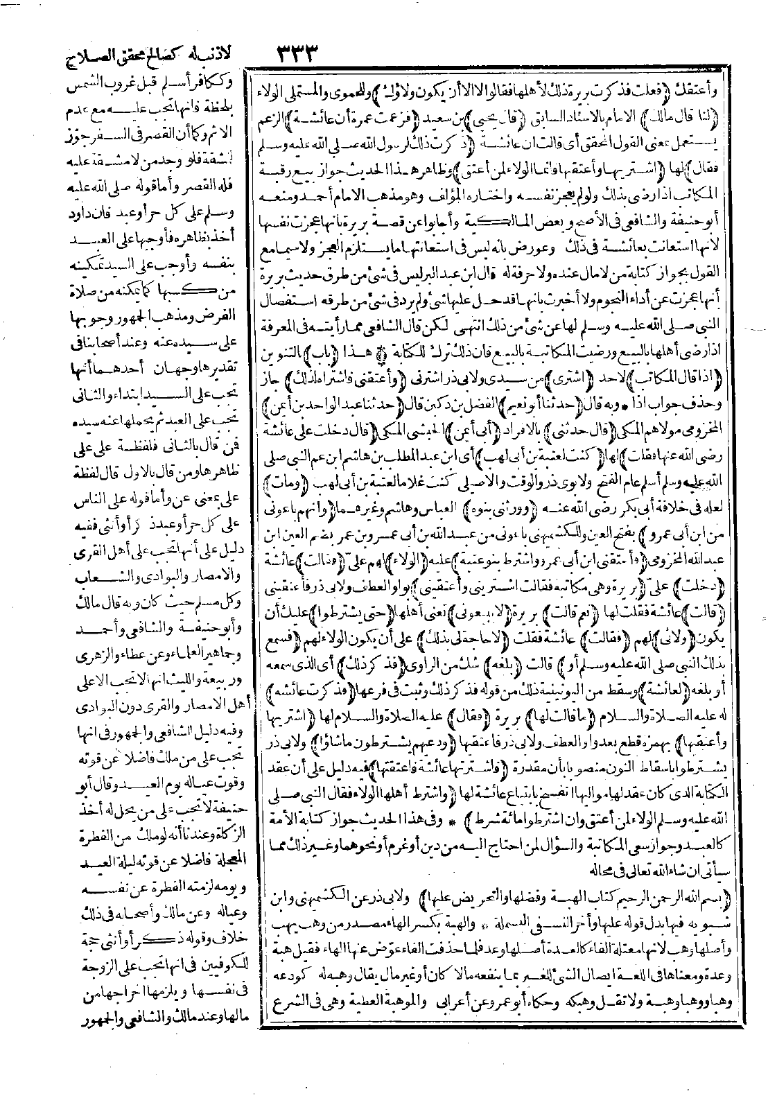(اشتريها وأعتقيها فإنما الولاء لمن أعتق) وظاهر هذا الحديث جواز بيع رقبة المكاتب إذا رضي بذلك ولو لم يعجز نفسه واختاره المؤلّف وهو مذهب الإمام أحمد ومنعه أبو حنيفة والشافعي في الأصح وبعض المالكية، وأجابوا عن قصة بريرة بأنها عجزت نفسها لأنها استعانت بعائشة في ذلك، وعورض ليس في استعانتها ما يستلزم العجز ولا سيما مع القول بجواز كتابة من لا مال عنده ولا حِرفة له. قال ابن عبد البر: ليس في شيء من طرق حديث بريرة أنها عجزت عن أداء النجوم ولا أخبرت بأنها قد حلّ عليها شيء لم يرد في شيء من طرقه استفصال النبي -صَلَّى اللَّهُ عَلَيْهِ وَسَلَّمَ- لها عن شيء من ذلك انتهى.