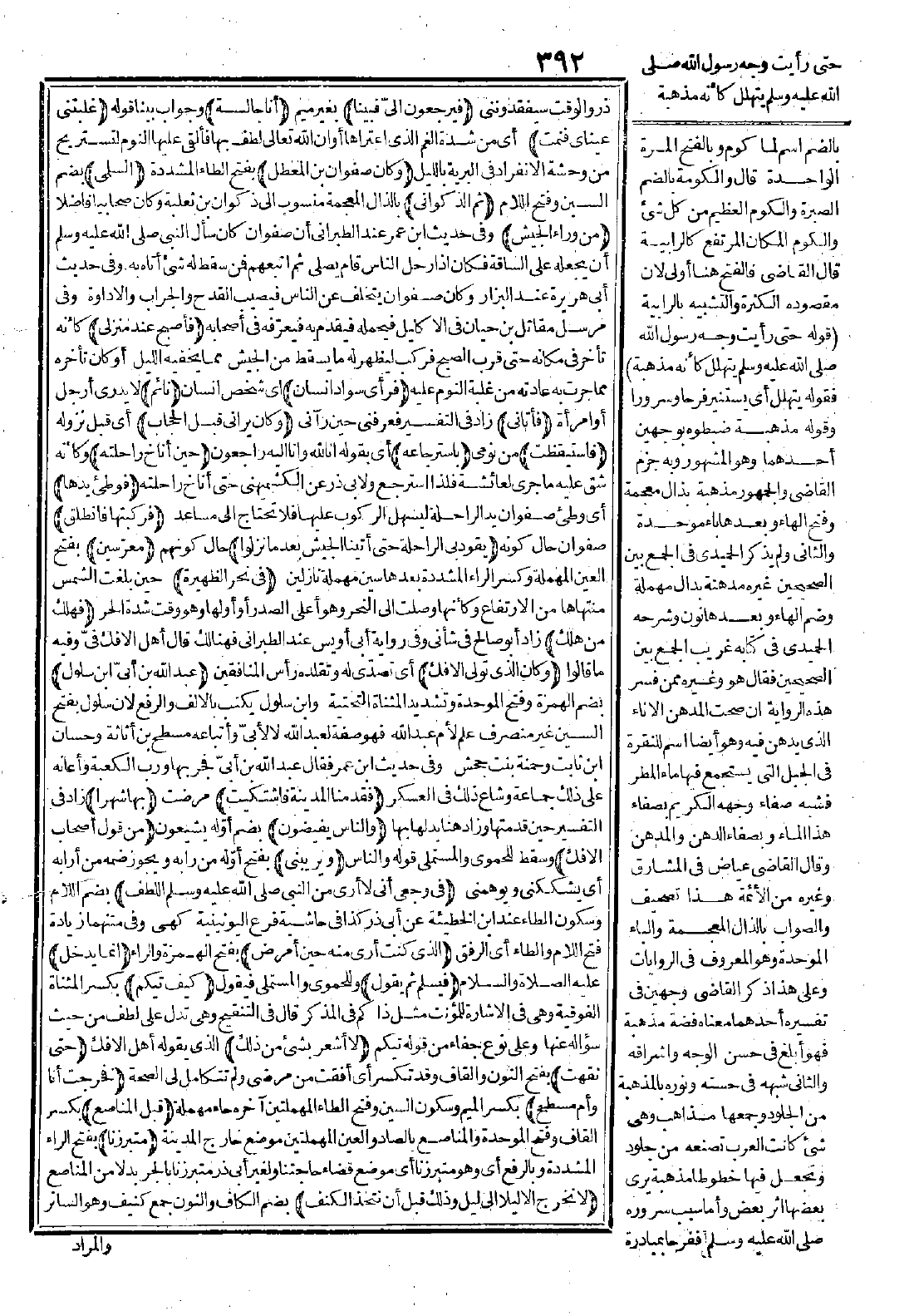 ذر والوقت: سيفقدونني (فيرجعون إليّ فبينا) بغير ميم (أنا جالسة) وجواب بينا قوله (غلبتني عيناي فنمت) أي من شدة الغم الذي اعتراها، أو أن الله تعالى لطف بها فألقى عليها النوم لتستريح من وحشة الانفراد في البرية بالليل (وكان صفوان بن المعطل) بفتح الطاء المشددة (السلمي) بضم السين وفتح اللام (ثم الذكواني) بالذال المعجمة منسوب إلى ذكوان بن ثعلبة وكان صحابيًّا فاضلاً (من وراء الجيش). وفي حديث ابن عمر عند الطبراني أن صفوان كان سأل النبي -صَلَّى اللَّهُ عَلَيْهِ وَسَلَّمَ- أن يجعله على الساقة، فكان إذا رحل الناس قام يصلّي ثم اتبعهم فمن سقط له شيء أتاه به، وفي حديث أبي هريرة عند البزار: وكان صفوان يتخلّف عن الناس فيصيب القدح والجراب والإداوة، وفي مرسل مقاتل بن حيان في الإكليل: فيحمله فيقدم به فيعرّفه في أصحابه (فأصبح عند منزلي) كأنه تأخر في مكانه حتى قرب الصبح فركب ليظهر له ما يسقط من الجيش مما يخفيه الليل أو كان تأخره مما جرت به عادته من غلبة النوم عليه (فرأى سواد إنسان) أي شخص إنسان (نائم) لا يدري أرجل أو امرأة (فأتاني) زاد في التفسير فعرفني حين رآني (وكان يراني قبل الحجاب) أي قبل نزوله (فاستيقظت) من نومي (باسترجاعه) أي بقوله: إنّا لله وإنّا إليه راجعون (حين أناخ راحلته) وكأنه شق عليه ما جرى لعائشة فلذا استرجع، ولأبي ذر عن الكشميهني: حتى أناخ راحلته (فوطئ يدها) أي وطئ صفوان يد الراحلة ليسهل الركوب عليها فلا تحتاج إلى مساعد (فركبتها فانطلق) صفوان حال كونه (يقود بي الراحلة حتى أتينا الجيش بعدما نزلوا) حال كونهم (معرسين) بفتح العين المهملة وكسر الراء المشددة بعدها سين مهملة نازلين (في نحر الظهيرة) حين بلغت الشمس منتهاها من الارتفاع وكأنها وصلت إلى النحر وهو أعلى المصدر أو أولها وهو وقت شدة الحر (فهلك من هلك) زاد أبو صالح في شأني، وفي رواية أبي أويس عند الطبراني: فهنالك قال أهل الإفك فيّ وفيه ما قالوا (وكان الذي تولى الإفك) أي تصدّى له وتقلده رأس المنافقين (عبد الله بن أُبي بن سلول)