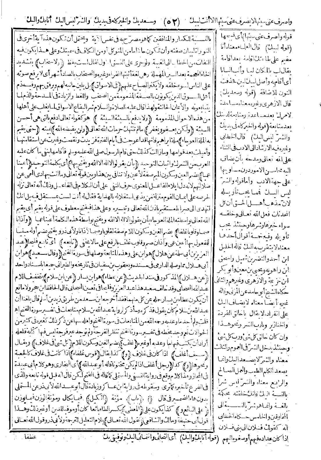 قلت: ولم أجد ما وعد به -رحمه الله- من التابعات في سورة الفتح، ولعله سها عن ذكر ذلك كغيره في كثير من الحوالات. نعم وجد بخطه في تفسير سورة الفتح تنظر الفرجة ولم توجد غير فرجة ليس فيها كتابة فلعله أراد أن يكتب فيها ما وعد به أو غيره.