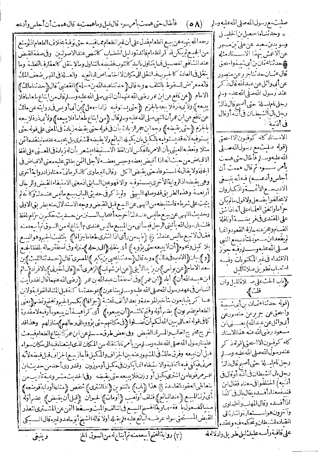 2136 - حَدَّثَنَا عَبْدُ اللَّهِ بْنُ مَسْلَمَةَ حَدَّثَنَا مَالِكٌ عَنْ نَافِعٍ عَنِ ابْنِ عُمَرَ -رضي الله عنهما- أَنَّ النَّبِيَّ -صَلَّى اللَّهُ عَلَيْهِ وَسَلَّمَ- قَالَ: «مَنِ ابْتَاعَ طَعَامًا فَلاَ يَبِعْهُ حَتَّى يَسْتَوْفِيَهُ». زَادَ إِسْمَاعِيلُ «مَنِ ابْتَاعَ طَعَامًا فَلاَ يَبِعْهُ حَتَّى يَقْبِضَهُ».