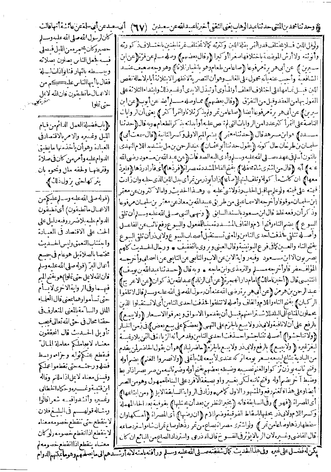 2149 - حَدَّثَنَا مُسَدَّدٌ حَدَّثَنَا مُعْتَمِرٌ قَالَ: سَمِعْتُ أَبِي يَقُولُ: حَدَّثَنَا أَبُو عُثْمَانَ عَنْ عَبْدِ اللَّهِ بْنِ مَسْعُودٍ -رضي الله عنه- قَالَ: "مَنِ اشْتَرَى شَاةً مُحَفَّلَةً فَرَدَّهَا فَلْيَرُدَّ مَعَهَا صَاعًا من تمر. وَنَهَى النَّبِيُّ -صَلَّى اللَّهُ عَلَيْهِ وَسَلَّمَ- أَنْ تُلَقَّى الْبُيُوعُ". [الحديث 2149 - طرفه في: 2164].