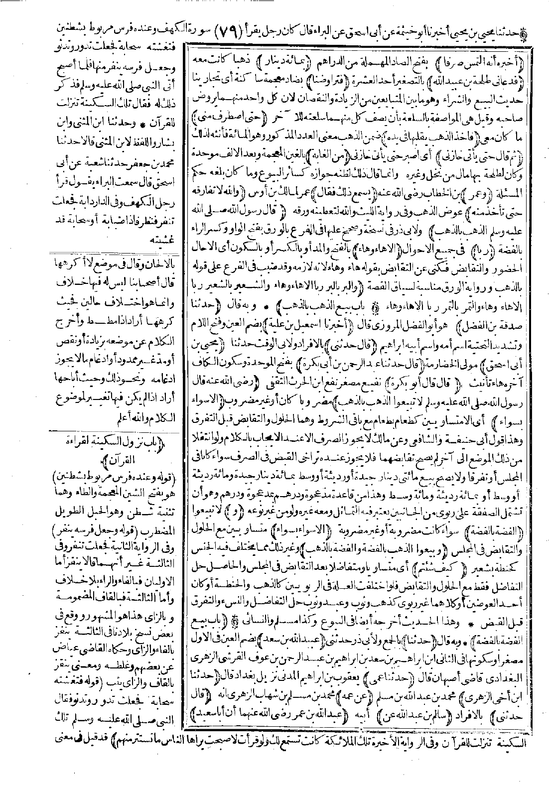 2176 - حَدَّثَنَا عُبَيْدُ اللَّهِ بْنُ سَعْدٍ حَدَّثَنَا عَمِّي حَدَّثَنَا ابْنُ أَخِي الزُّهْرِيِّ عَنْ عَمِّهِ قَالَ: حَدَّثَنِي سَالِمُ بْنُ عَبْدِ اللَّهِ عَنْ عَبْدِ اللَّهِ بْنِ عُمَرَ -رضي الله عنهما- أَنَّ أَبَا سَعِيدٍ حَدَّثَهُ مِثْلَ ذَلِكَ حَدِيثًا عَنْ رَسُولِ اللَّهِ -صَلَّى اللَّهُ عَلَيْهِ وَسَلَّمَ-، فَلَقِيَهُ عَبْدُ اللَّهِ بْنُ عُمَرَ، فَقَالَ: يَا أَبَا سَعِيدٍ، مَا هَذَا الَّذِي تُحَدِّثُ عَنْ رَسُولِ اللَّهِ -صَلَّى اللَّهُ عَلَيْهِ وَسَلَّمَ-؟ فَقَالَ أَبُو سَعِيدٍ فِي الصَّرْفِ سَمِعْتُ رَسُولَ اللَّهِ -صَلَّى اللَّهُ عَلَيْهِ وَسَلَّمَ- يَقُولُ: «الذَّهَبُ بِالذَّهَبِ مِثْلاً بِمِثْلٍ، وَالْوَرِقُ بِالْوَرِقِ مِثْلاً بِمِثْلٍ». [الحديث 2176 - طرفاه في: 2177، 2178].