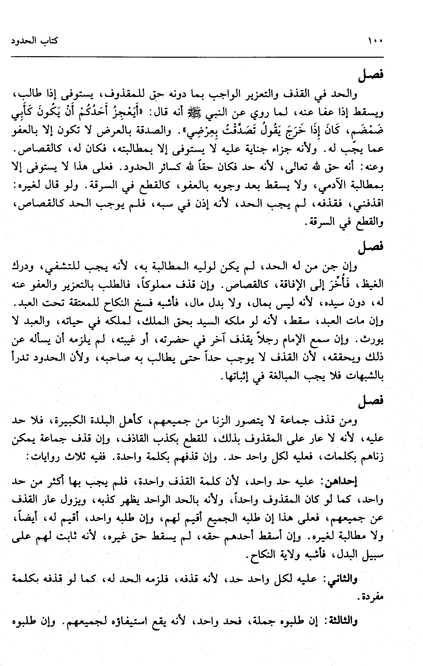 ومن قذف جماعة لا يتصور الزنا من جميعهم، كأهل البلدة الكبيرة، فلا حد عليه؛ لأنه لا عار على المقذوف بذلك، للقطع بكذب القاذف، وإن قذف جماعة يمكن زناهم بكلمات، فعليه لكل واحد حد. وإن قذفهم بكلمة واحدة. ففيه ثلاث روايات: