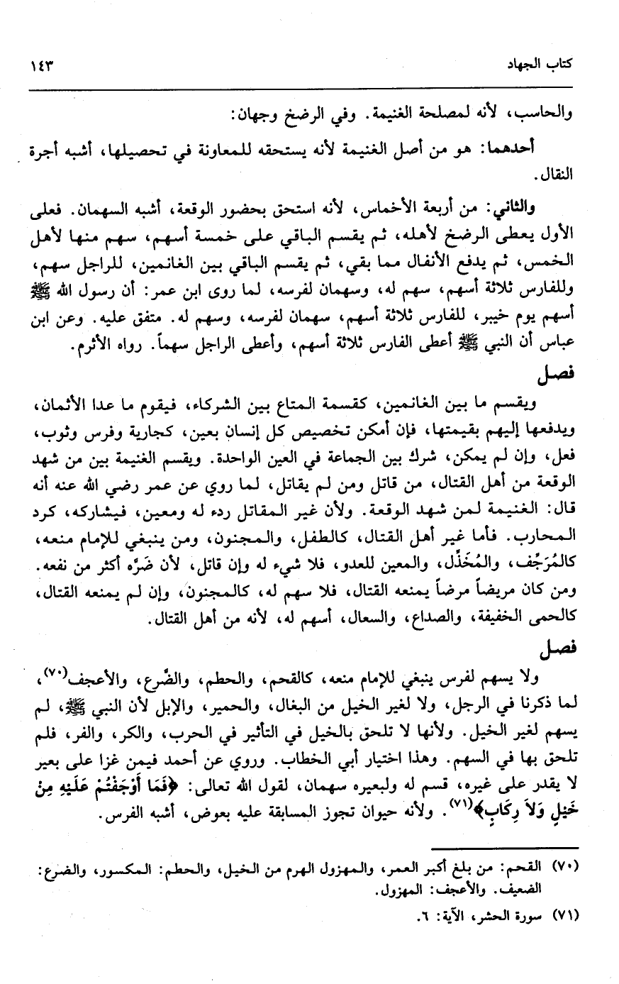 والثاني: من أربعة الأخماس؛ لأنه استحق بحضور الوقعة، أشبه السهمان. فعلى الأول يعطى الرضخ لأهله، ثم يقسم الباقي على خمسة أسهم، سهم منها لأهل الخمس، ثم يدفع الأنفال مما بقي، ثم يقسم الباقي بين الغانمين، للراجل سهم، وللفارس ثلاثة أسهم، سهم له، وسهمان لفرسه، لما روى ابن عمر: «أن رسول الله - صَلَّى اللَّهُ عَلَيْهِ وَسَلَّمَ - أسهم يوم خيبر، للفارس ثلاثة أسهم، سهمان لفرسه، وسهم له» . متفق عليه، وعن ابن عباس «أن النبي - صَلَّى اللَّهُ عَلَيْهِ وَسَلَّمَ - أعطى الفارس ثلاثة أسهم، وأعطى الراجل سهما» . رواه الأثرم.