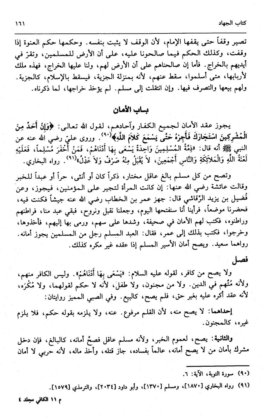 يحوز عقد الأمان لجميع الكفار وآحادهم، لقول الله تعالى: {وَإِنْ أَحَدٌ مِنَ الْمُشْرِكِينَ اسْتَجَارَكَ فَأَجِرْهُ حَتَّى يَسْمَعَ كَلامَ اللَّهِ} [التوبة: 6] . وروى علي - رَضِيَ اللَّهُ عَنْهُ - عن النبي - صَلَّى اللَّهُ عَلَيْهِ وَسَلَّمَ - أنه قال: «ذمة المسلمين واحدة يسعى بها أدناهم، فمن أخفر مسلما، فعليه لعنة الله والملائكة والناس أجمعين، لا يقبل منه صرف ولا عدل.» رواه البخاري.