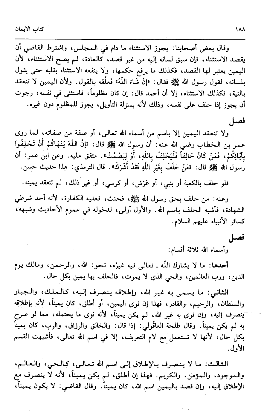 ولا تنعقد اليمين إلا باسم من أسماء الله تعالى، أو صفة من صفاته، لما روى عمر بن الخطاب - رَضِيَ اللَّهُ عَنْهُ -: «أن رسول الله - صَلَّى اللَّهُ عَلَيْهِ وَسَلَّمَ - قال: إن الله ينهاكم أن تحلفوا بآبائكم، فمن كان حالفا فليحف بالله، أو ليصمت» متفق عليه. وعن ابن عمر: «أن رسول الله - صَلَّى اللَّهُ عَلَيْهِ وَسَلَّمَ - قال: من حلف بغير الله فقد أشرك» . قال الترمذي: هذا حديث حسن.