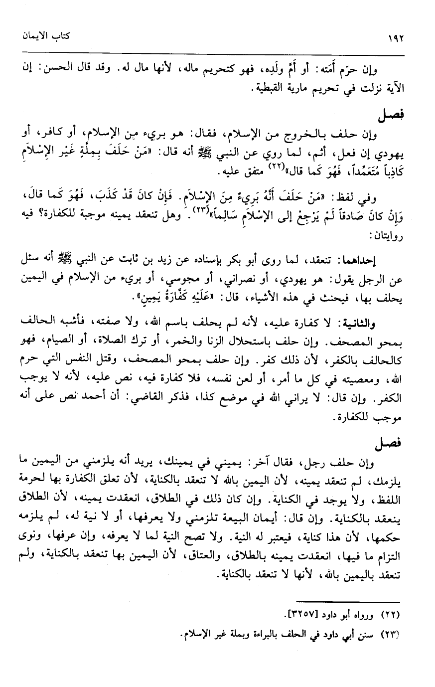 وفي لفظ: «من حلف أنه بريء من الإسلام، فإن كان قد كذب، فهو كما قال، وإن كان صادقا لم يرجع إلى الإسلام سالما» .