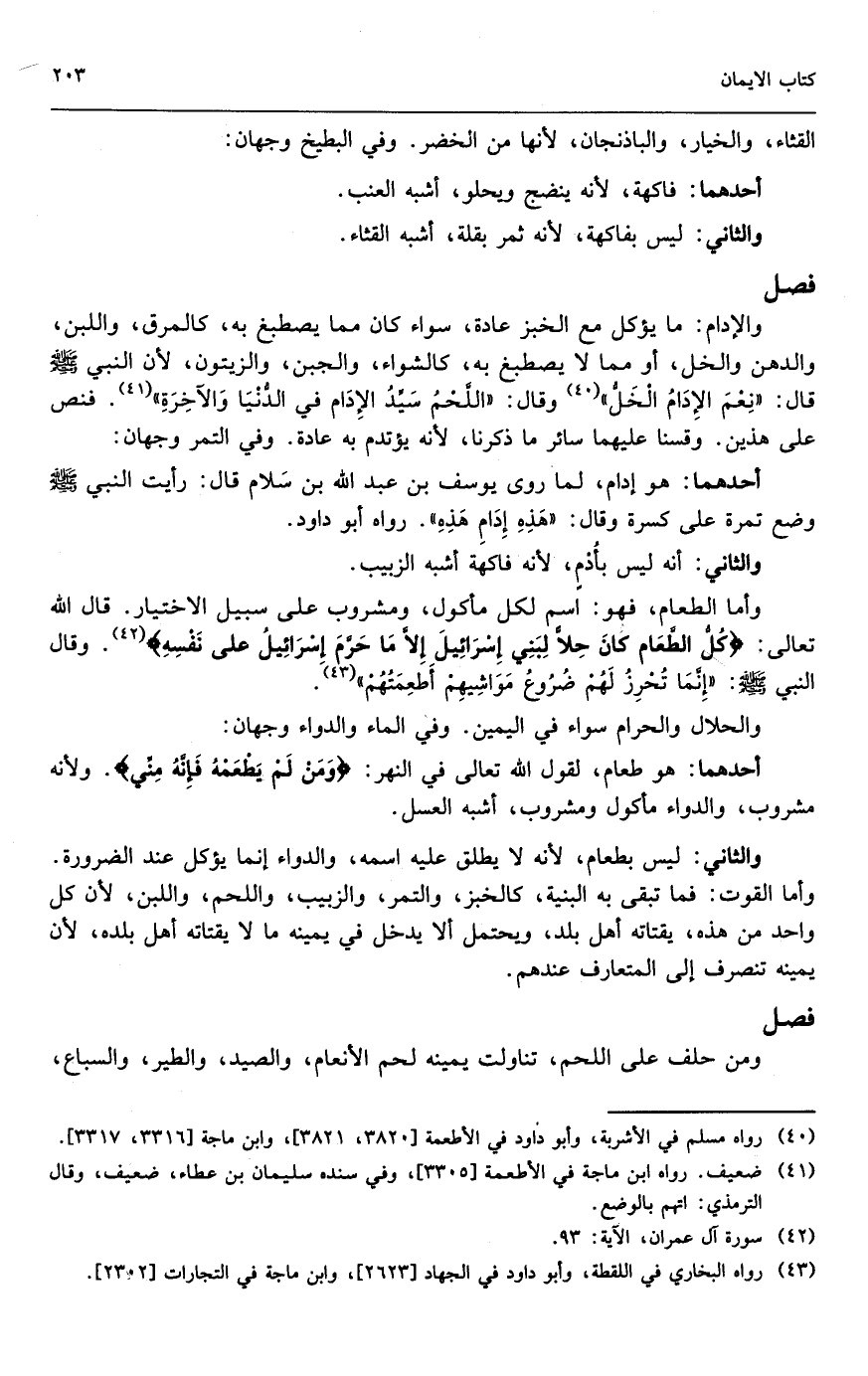 وأما الطعام، فهو: اسم لكل مأكول، ومشروب على سبيل الاختيار. قال الله تعالى: {كُلُّ الطَّعَامِ كَانَ حِلا لِبَنِي إِسْرَائِيلَ إِلا مَا حَرَّمَ إِسْرَائِيلُ عَلَى نَفْسِهِ} [آل عمران: 93] . وقال النبي - صَلَّى اللَّهُ عَلَيْهِ وَسَلَّمَ -: «إنما تحرز لهم ضروع مواشيهم أطعمتهم» .