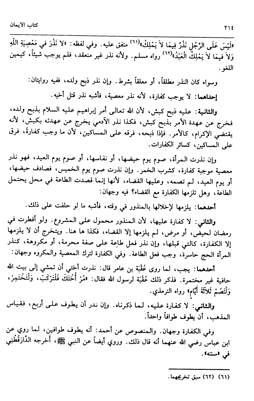 والثاني: لا كفارة عليها؛ لأن المنذور محمول على المشروع. ولو أفطرت في رمضان لحيض، أو لمرض لم يلزمها إلا القضاء، فكذا هاهنا، ويتخرج أن لا يلزمها إلا الكفارة، كالتي قبلها، وإن نذر فعل طاعة على صفة محرمة، أو مكروهة، كنذر المرأة الحج حاسرة، وجب فعل الطاعة. وفي الكفارة لترك المعصية والمكروه وجهان:
