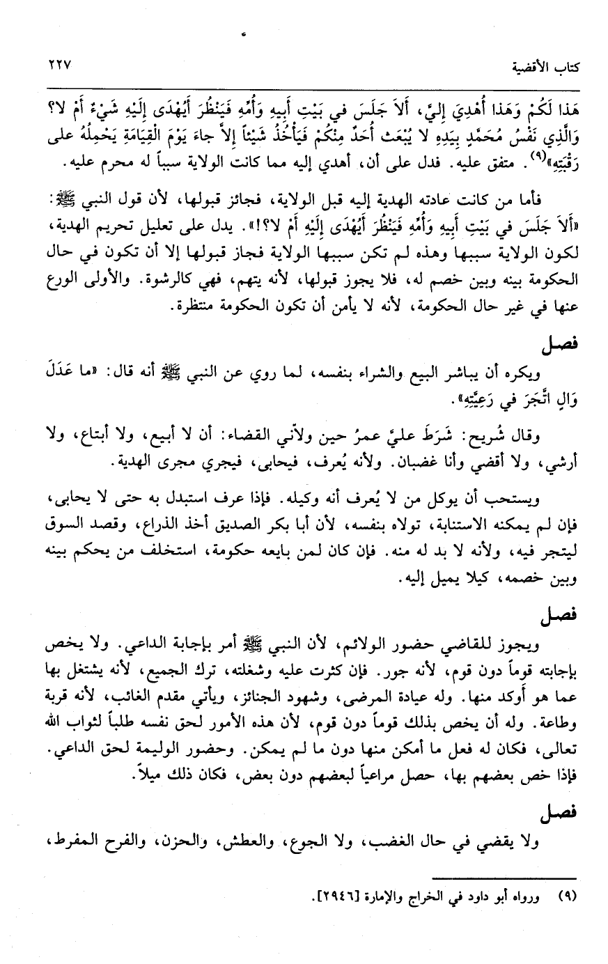 ولا يقضي في حال الغضب، ولا الجوع، والعطش، والحزن، والفرح المفرط،