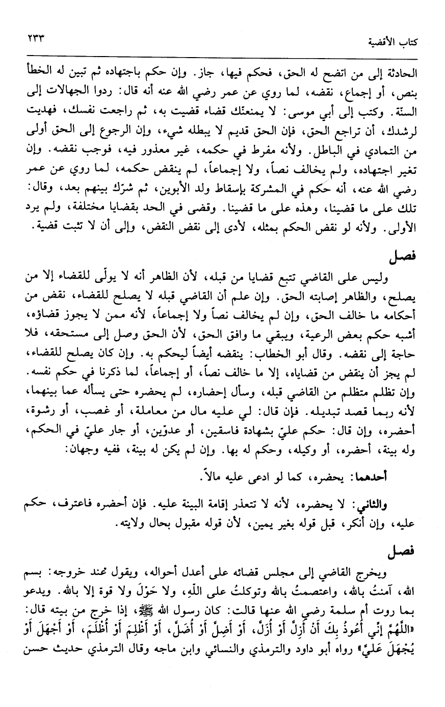 وليس على القاضي تتبع قضايا من قبله؛ لأن الظاهر أنه لا يولى للقضاء إلا من يصلح، والظاهر إصابته الحق. وإن علم أن القاضي قبله لا يصلح للقضاء، نقض من أحكامه ما خالف الحق، وإن لم يخالف نصاً ولا إجماعاً؛ لأنه ممن لا يجوز قضاؤه، أشبه حكم بعض الرعية، ويبقي ما وافق الحق؛ لأن الحق وصل إلى مستحقه، فلا حاجة إلى نقضه. وقال أبو الخطاب: ينقضه أيضاً ليحكم به. وإن كان يصلح للقضاء، لم يجز أن ينقض من قضاياه، إلا ما خالف نصاً أو إجماعاً، لما ذكرنا في حكم نفسه. وإن تظلم متظلم من القاضي قبله وسأل إحضاره، لم يحضره حتى يسأله عما بينهما؛ لأنه ربما قصد تبديله. فإن قال: لي عليه مال من معاملة، أو غصب، أو رشوة، أحضره، وإن قال: حكم علي بشهادة فاسقين، أو عدوين، أو جار علي في الحكم، وله بينة، أحضره، أو وكيله، وحكم له بها. وإن لم يكن له بينة، ففيه وجهان: