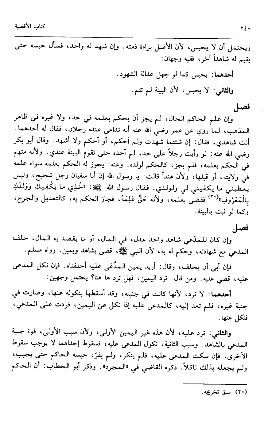 والثاني: ترد عليه؛ لأن هذه غير اليمين الأولى؛ ولأن سبب الأولى قوة جنبة المدعي بالشاهد. وسبب الثانية نكول المدعى عليه، فسقوط إحداهما لا يوجب سقوط الأخرى. فإن سكت المدعى عليه، فلم ينكر ولم يقر، حبسه الحاكم حتى يجيب، ولم يجعله بذلك ناكلاً. ذكره القاضي في المجرد. وذكر أبو الخطاب أن الحاكم