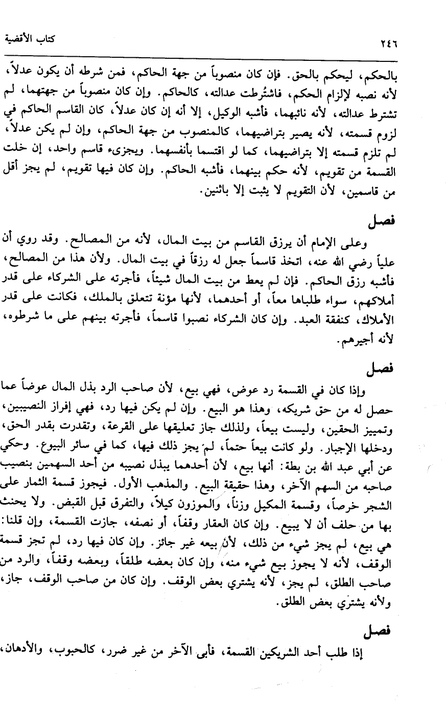 بالحكم، ليحكم بالحق. فإن كان منصوباً من جهة الحاكم، فمن شرطه أن يكون عدلاً؛ لأنه نصبه لإلزام الحكم، فاشترطت عدالته، كالحاكم. وإن كان منصوباً من جهتهما، لم تشترط عدالته؛ لأنه نائبهما، فأشبه الوكيل، إلا أنه إن كان عدلاً، كان القاسم كالحاكم في لزوم قسمته؛ لأنه يصير بتراضيهما، كالمنصوب من جهة الحاكم، وإن لم يكن عدلاً، لم تلزم قسمته إلا بتراضيهما، كما لو اقتسما بأنفسهما. ويجزئ قاسم واحد، إن خلت القسمة من تقويم؛ لأنه حكم بينهما، فأشبه الحاكم. وإن كان فيها تقويم، لم يجز أقل من قاسمين؛ لأن التقويم لا يثبت إلا باثنين.