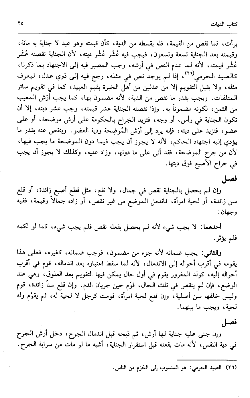 برأت، فما نقص من القيمة، فله بقسطه من الدية، كأن قيمته وهو عبد لا جناية به مائة، وقيمته بعد الجناية تسعة وتسعون، فيجب فيه عُشر عشر ديته؛ لأن الجناية نقصته عشر عُشر قيمته؛ لأنه لما عدم النص في أرشه، وجب المصير فيه إلى الاجتهاد بما ذكرنا، كالصيد الحرمي، إذا لم يوجد نص في مثله، رجع فيه إلى ذوي عدل، ليعرف مثله، ولا يقبل التقويم إلا من عدلين من أهل الخبرة بقيم العبيد، كما في تقويم سائر المتلفات، ويجب بقدر ما نقص من الدية؛ لأنه مضمون بها، كما يجب أرش المعيب من الثمن، لكونه مضمونًا به، وإذا نقصته الجناية عشر قيمته، وجب عشر ديته، إلا أن تكون الجناية في رأس، أو وجه فتزيد الجراح بالحكومة على أرش موضحة، أو على عضو، فتزيد على ديته، فإن يرد إلى أرش الموضحة ودية العضو، وينقص عنه بقدر ما يؤدي إليها اجتهاد الحاكم؛ لأنه لا يجوز أن يجب فيما دون الموضحة ما يجب فيها؛ لأن من جرح الموضحة، فقد أتى على ما دونها، وزاد عليه، وكذلك لا يجوز أن يجب في جراح الإصبع فوق ديتها.