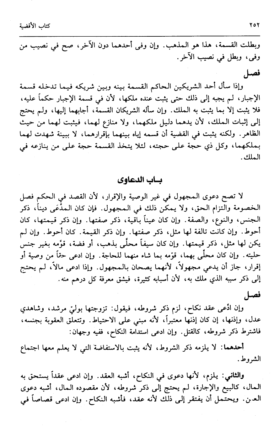 لا تصح دعوى المجهول في غير الوصية والإقرار؛ لأن القصد في الحكم فصل الخصومة والتزام الحق، ولا يمكن ذلك في المجهول. فإن كان المدعى ديناً، ذكر الجنس والنوع والصفة. وإن كان عيناً باقية ذكر صفتها. وإن ذكر قيمتها، كان أحوط. وإن كانت تالفة لها مثل، ذكر صفتها. وإن ذكر القيمة كان أحوط. وإن لم يكن لها مثل ذكر قيمتها. وإن كان سيفاً محلى بذهب، أو فضة، قومه بغير جنس حليته. وإن كان محلى بهما، قومه بما شاء منهما للحاجة. وإن ادعى حقاً من وصية أو إقرار، جاز أن يدعي مجهولاً؛ لأنهما يصحان بالمجهول. وإذا ادعى مالاً، لم يحتج إلى ذكر سببه الذي ملك به؛ لأن أسبابه كثيرة، فيشق معرفة كل درهم منه.