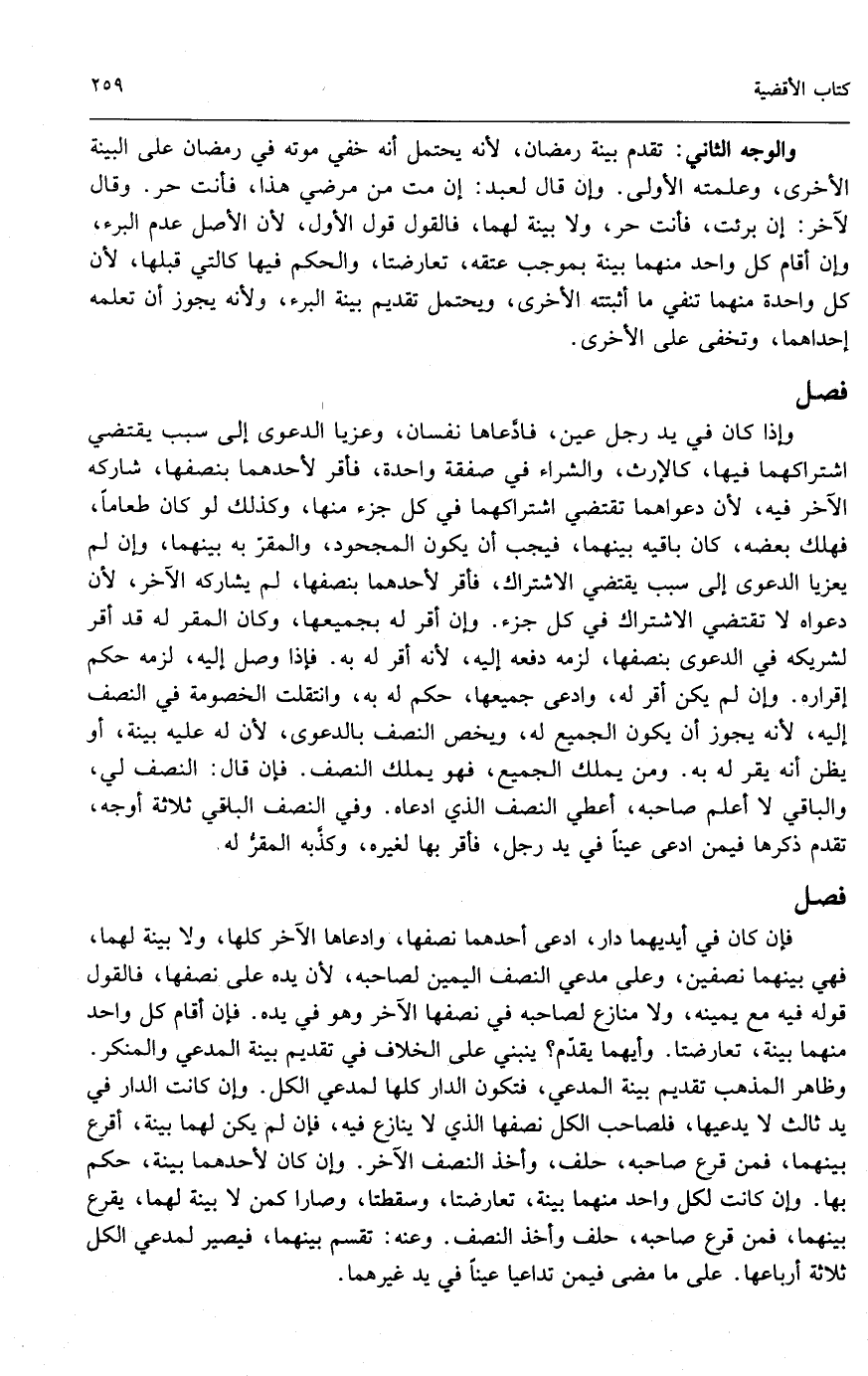 وظاهر المذهب تقديم بينة المدعي، فتكون الدار كلها لمدعي الكل، وإن كانت الدار في يد ثالث لا يدعيها، فلصاحب الكل نصفها الذي لا ينازع فيه، فإن لم يكن لهما بينة، أقرع بينهما، فمن قرع صاحبه، حلف، وأخذ النصف الآخر، وإن كان لأحدهما بينة، حكم بها، وإن كانت لكل واحد منهما بينة، تعارضتا، وسقطتا، وصارا كمن لا بينة لهما، يقرع بينهما، فمن قرع صاحبه، حلف وأخذ النصف، وعنه: تقسم بينهما، فيصير لمدعي الكل ثلاثة أرباعها، على ما مضى فيمن تداعيا عيناً في يد غيرهما.