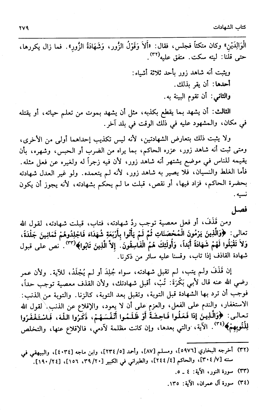 الوالدين وكان متكئاً فجلس، فقال: ألا وقول الزور، وشهادة الزور، فما زال يكررها، حتى قلنا: ليته سكت» متفق عليه.