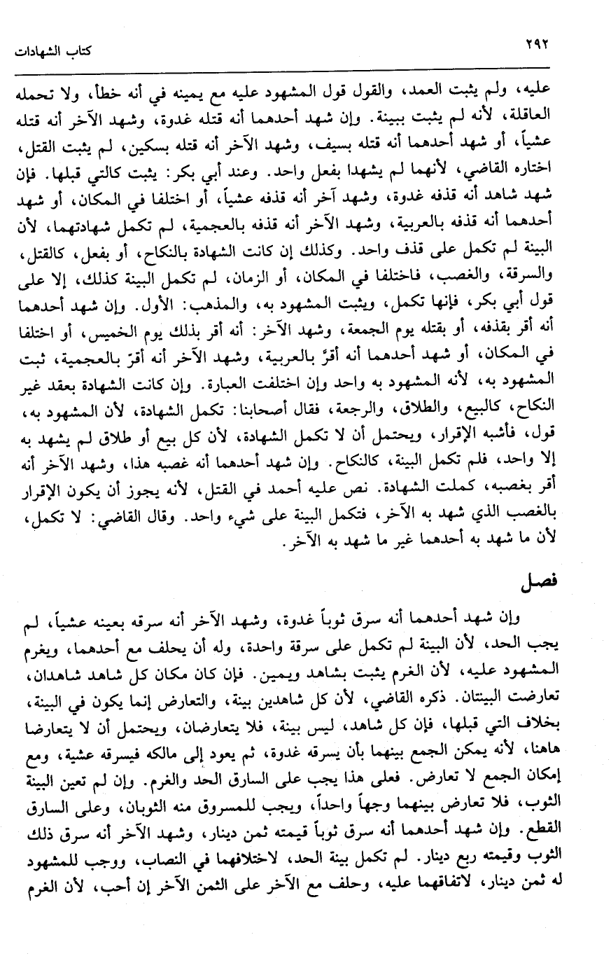 عليه، ولم يثبت العمد، والقول قول المشهود عليه مع يمينه في أنه خطأ، ولا تحمله العاقلة؛ لأنه لم يثبت ببينة، وإن شهد أحدهما أنه قتله غدوة، وشهد الآخر أنه قتله عشياً، أو شهد أحدهما أنه قتله بسيف، وشهد الآخر أنه قتله بسكين، لم يثبت القتل، اختاره القاضي؛ لأنهما لم يشهدا بفعل واحد، وعند أبي بكر: يثبت كالتي قبلها، فإن شهد شاهد أنه قذفه غدوة، وشهد آخر أنه قذفه عشياً، أو اختلفا في المكان، أو شهد أحدهما أنه قذفه بالعربية، وشهد الآخر أنه قذفه بالعجمية، لم تكمل شهادتهما؛ لأن البينة لم تكمل على قذف واحد، وكذلك إن كانت الشهادة بالنكاح أو بفعل، كالقتل، والسرقة، والغصب فاختلفا في المكان، أو الزمان، لم تكمل البينة كذلك، إلا على قول أبي بكر فإنها تكمل، ويثبت المشهود به، والمذهب: الأول، وإن شهد أحدهما أنه أقر بقذفه، أو بقتله يوم الجمعة، وشهد الآخر: أنه أقر بذلك يوم الخميس، أو اختلفا في المكان، أو شهد أحدهما أنه أقر بالعربية، وشهد الآخر أنه أقر بالعجمية، ثبت المشهود به؛ لأنه المشهود به واحد وإن اختلفت العبارة، وإن كانت الشهادة بعقد غير النكاح، كالبيع، والطلاق، والرجعة، فقال أصحابنا: تكمل الشهادة؛ لأن المشهود به، قول، فأشبه الإقرار، ويحتمل أن لا تكمل الشهادة؛ لأن كل بيع أو طلاق لم يشهد به إلا واحد، فلم تكمل البينة، كالنكاح، وإن شهد أحدهما أنه غصبه هذا، وشهد الآخر أنه أقر بغصبه، كملت الشهادة، نص عليه أحمد في القتل؛ لأنه يجوز أن يكون الإقرار بالغصب الذي شهد به الآخر، فتكمل البينة على شيء واحد.