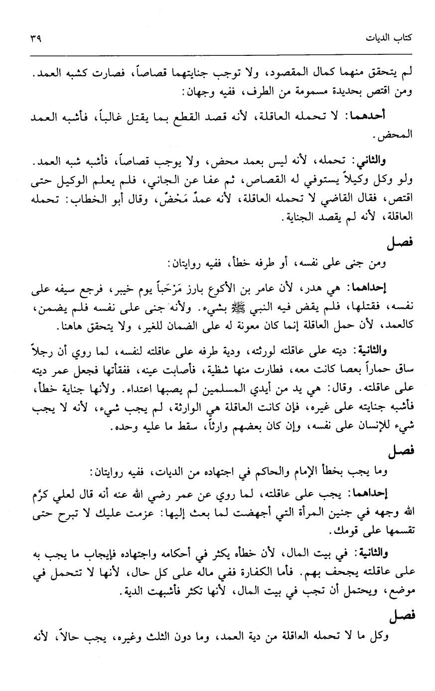والثانية: ديته على عاقلته لورثته، ودية طرفه على عاقلته لنفسه؛ لما روي: أن رجلًا ساق حمارًا بعصا كانت معه، فطارت منها شظية، فأصابت عينه، ففقأتها فجعل عمر ديته على عاقلته، وقال: هي يد من أيدي المسلمين لم يصبها اعتداء، ولأنها جناية خطأ، فأشبه جنايته على غيره، فإن كانت العاقلة هي الوارثة، لم يجب شيء؛ لأنه لا يجب شيء للإنسان على نفسه، وإن كان بعضهم وارثًا، سقط ما عليه وحده.