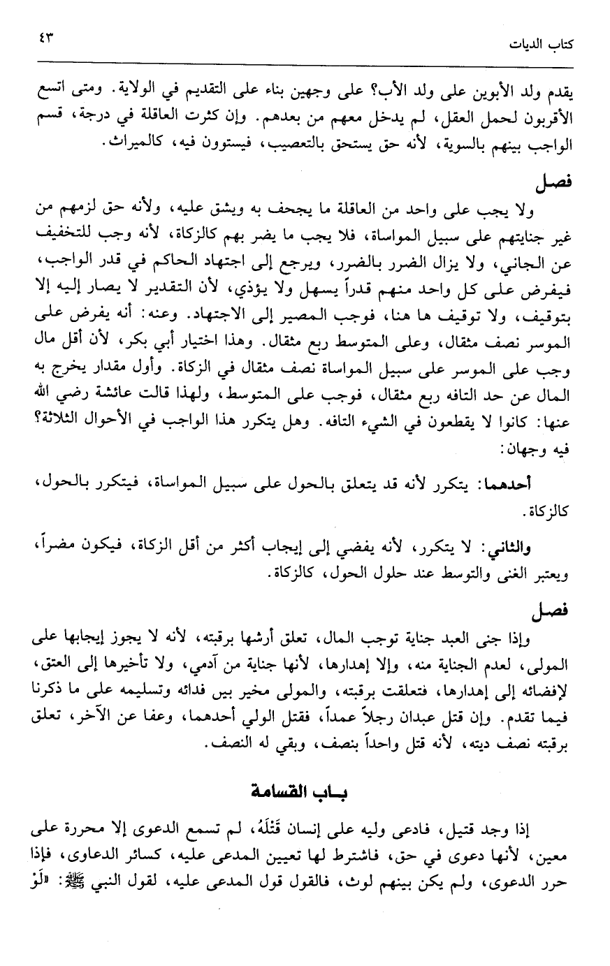 ولا يجب على واحد من العاقلة ما يجحف به ويشق عليه، ولأنه حق لزمهم من غير جنايتهم على سبيل المواساة، فلا يجب ما يضر بهم كالزكاة؛ لأنه وجب للتخفيف عن الجاني، ولا يزال الضرر بالضرر، ويرجع إلى اجتهاد الحاكم في قدر الواجب، فيفرض على كل واحد منهم قدرًا يسهل ولا يؤذي؛ لأن التقدير لا يصار إليه إلا بتوقيف، ولا توقيف هاهنا، فوجب المصير إلى الاجتهاد، وعنه: أنه يفرض على الموسر نصف مثقال، وعلى المتوسط ربع مثقال، وهذا اختيار أبي بكر؛ لأن أقل مال وجب على الموسر على سبيل المواساة نصف مثقال في الزكاة، وأول مقدار يخرج به المال عن حد التافه ربع مثقال، فوجب على المتوسط، ولهذا قالت عائشة - رَضِيَ اللَّهُ عَنْهَا -: كانوا لا يقطعون في الشيء التافه، وهل يتكرر هذا الواجب في الأحوال الثلاثة؟ فيه وجهان: