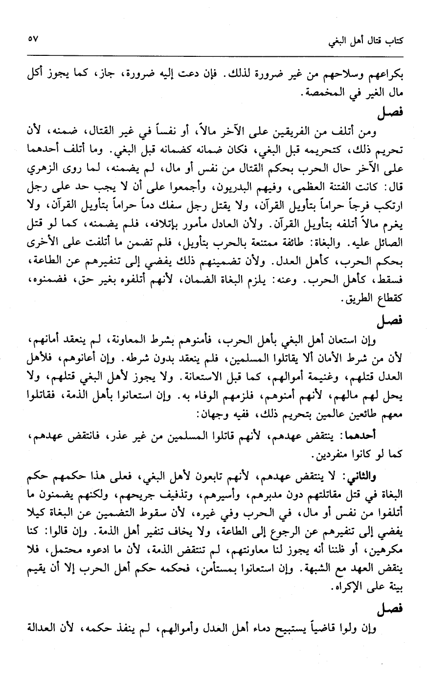 ومن أتلف من الفريقين على الآخر مالًا أو نفسًا في غير القتال ضمنه؛ لأن تحريم ذلك كتحريمه قبل البغي، فكان ضمانه كضمانه قبل البغي، وما أتلف أحدهما على الآخر حال الحرب بحكم القتال من نفس أو مال لم يضمنه؛ لما روى الزهري قال: كانت الفتنة العظمى، وفيهم البدريون، وأجمعوا على أن لا يجب حد على رجل ارتكب فرجًا حرامًا بتأويل القرآن، ولا يقتل رجل سفك دمًا حرامًا بتأويل القرآن، ولا يغرم مالًا أتلفه بتأويل القرآن، ولأن العادل مأمور بإتلافه فلم يضمنه، كما لو قتل الصائل عليه، والبغاة: طائفة ممتنعة بالحرب بتأويل، فلم تضمن ما أتلفت على الأخرى بحكم الحرب، كأهل العدل، ولأن تضمينهم ذلك يفضي إلى تنفيرهم عن الطاعة فسقط، كأهل الحرب، وعنه: يلزم البغاة الضمان؛ لأنهم أتلفوه بغير حق، فضمنوه كقطاع الطريق.