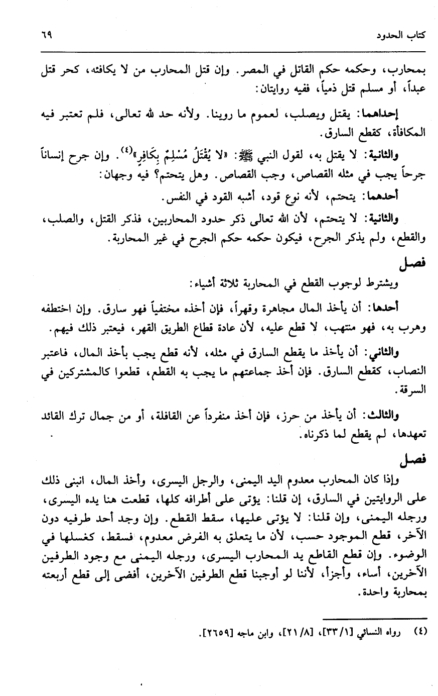 بمحارب، وحكمه حكم القاتل في المصر. وإن قتل المحارب من لا يكافئه، كحر قتل عبداً، أو مسلم قتل ذمياً، ففيه روايتان: