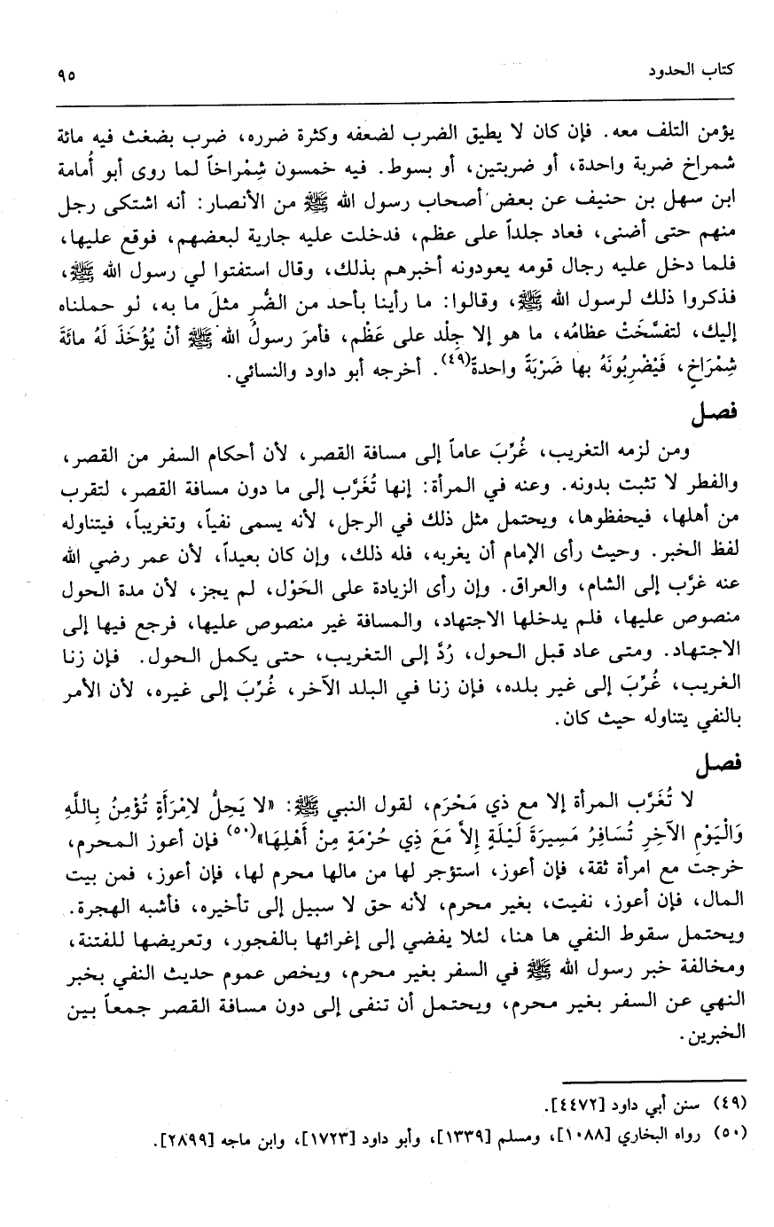 ومن لزمه التغريب، غرب عاما إلى مسافة القصر؛ لأن أحكام السفر من القصر والفطر لا تثبت بدونه. وعنه في المرأة: إنها تغرب إلى ما دون مسافة القصر؛ لتقرب من أهلها، فيحفظونها، ويحتمل مثل ذلك في الرجل؛ لأنه يسمى نفيا وتغريبا، فيتناوله لفظ الخبر. وحيث رأى الإمام أن يغربه فله ذلك، وإن كان بعيدا؛ لأن عمر - رَضِيَ اللَّهُ عَنْهُ - غرب إلى الشام والعراق. وإن رأى الزيادة على الحول لم يجز؛ لأن مدة الحول منصوص عليها، فلم يدخلها الاجتهاد، والمسافة غير منصوص عليها فرجع فيها إلى الاجتهاد. ومتى عاد قبل الحول رد إلى التغريب حتى يكمل الحول. فإن زنى الغريب غرب إلى غير بلده، فإن زنى في البلد الآخر غرب إلى غيره؛ لأن الأمر بالنفي يتناوله حيث كان.