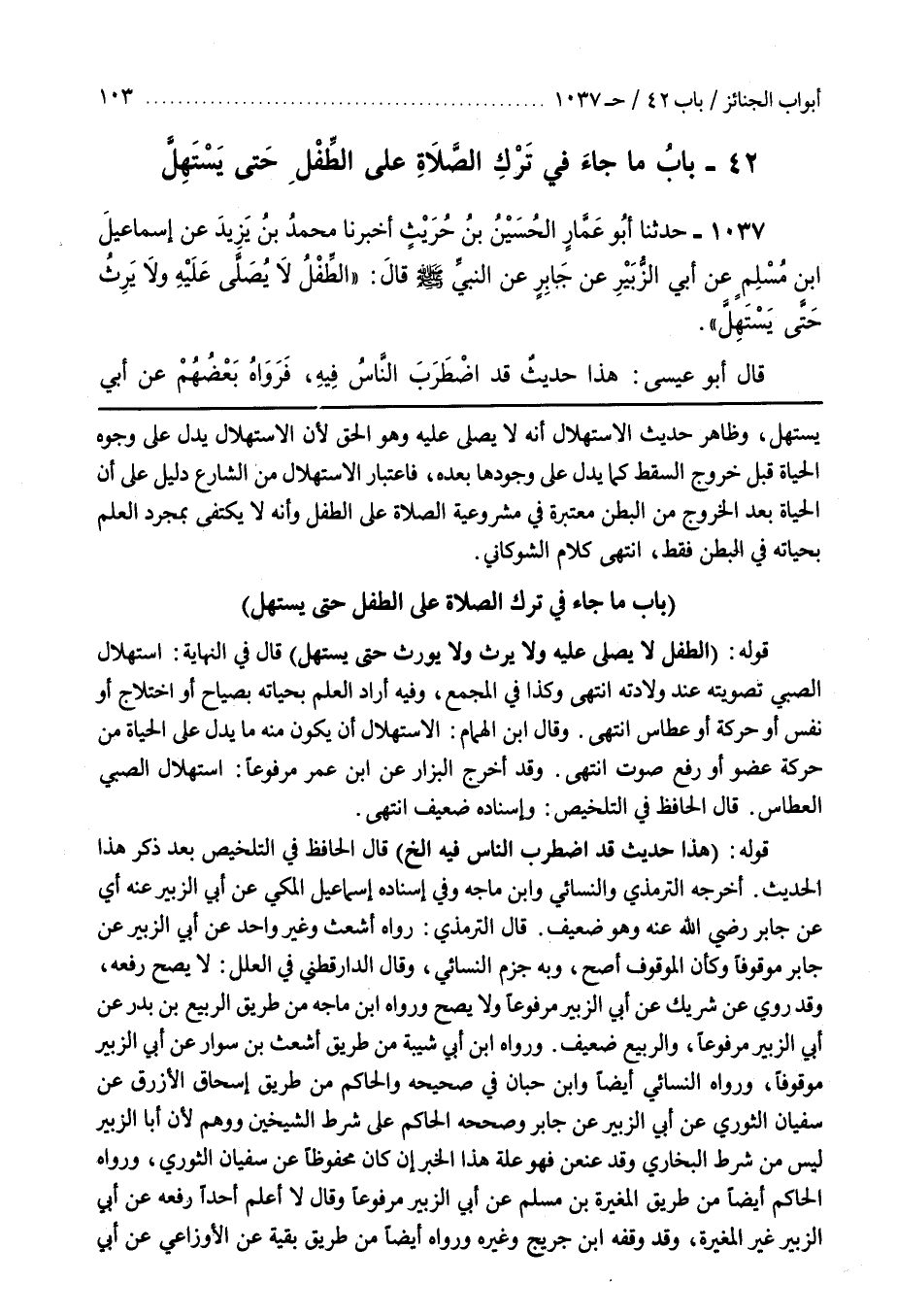 2 - (بَاب مَا جَاءَ فِي ترك الصلاة على الطفل حَتَّى يَسْتَهِلَّ)