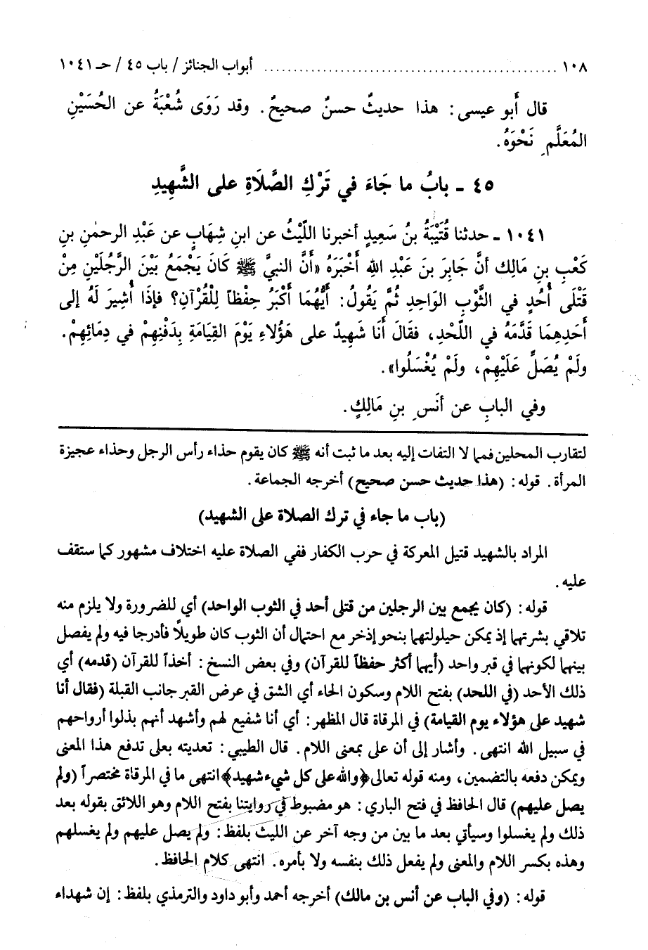 5 - (بَاب مَا جَاءَ فِي تَرْكِ الصَّلَاةِ عَلَى الشَّهِيدِ)